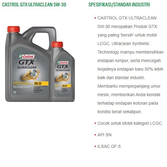 Castrol GTX Ultraclean 5W30 3,5 Liter Oli Mobil Bensin LCGC