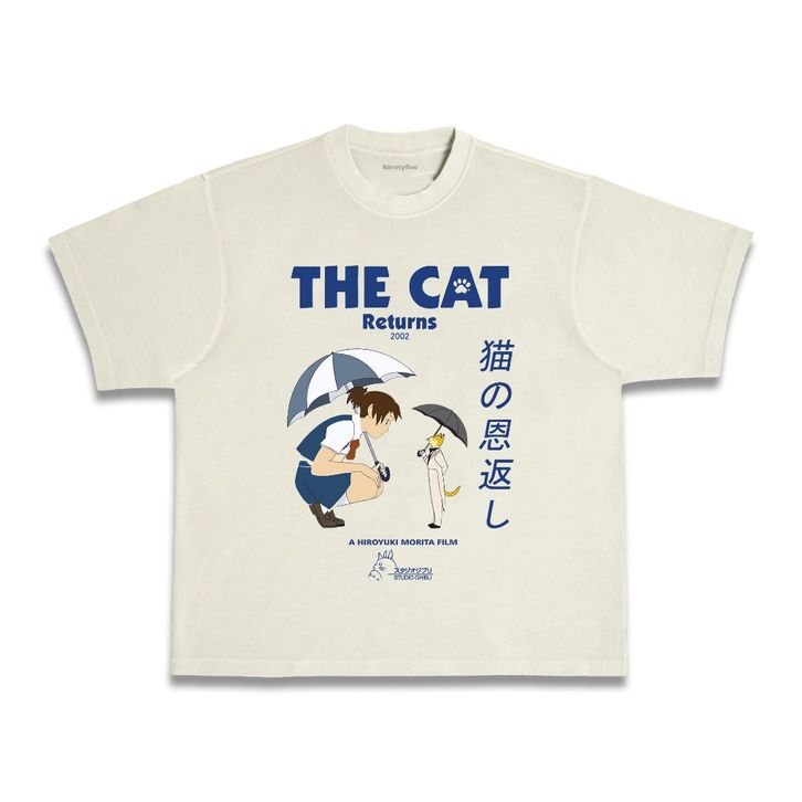Kaos Pria Boxy Kaos Boxy Studio Ghibli The Cat Returns Vintage Oversize Shirt