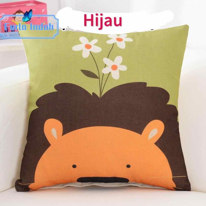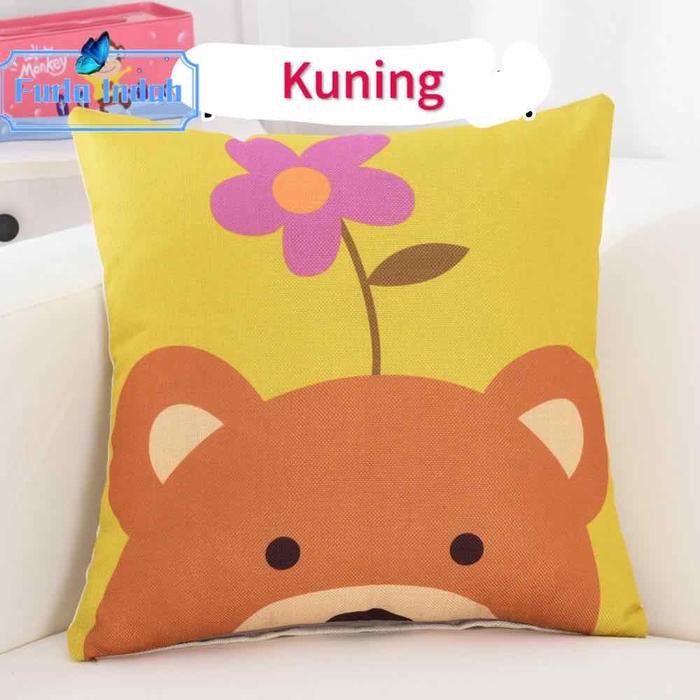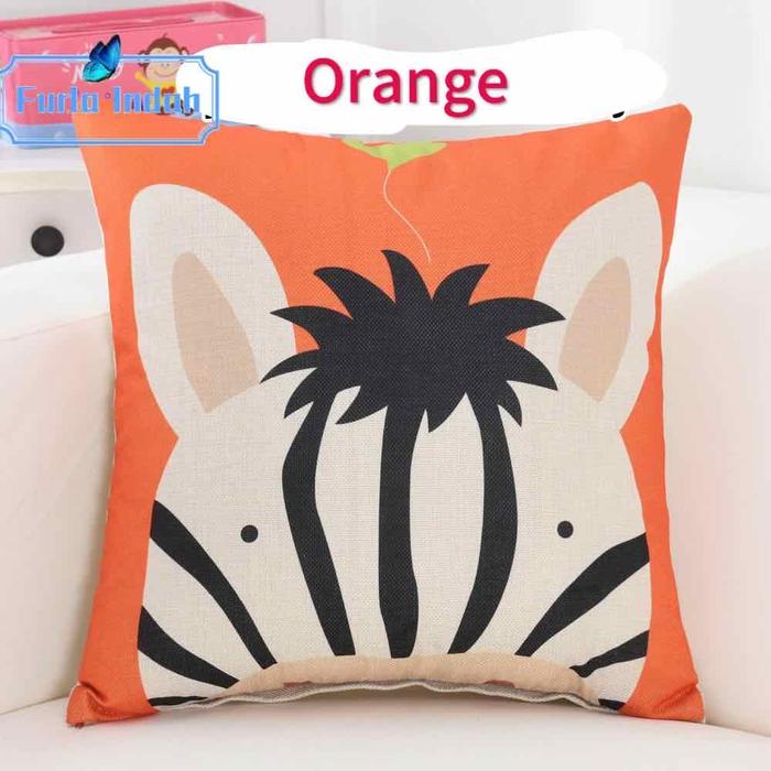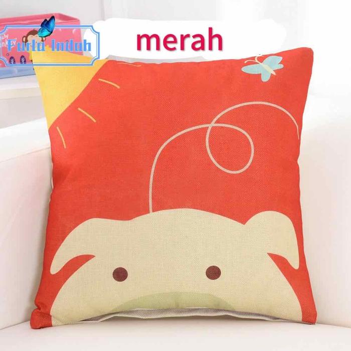 TERLARIS SARUNG BANTAL SOFA MOTIF KEPALA BINATANG KARTUN 45×45CM MERAH
