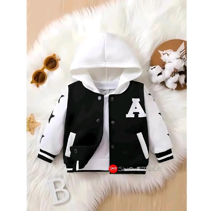 TERLARIS JAKET VARSITY ANAK INISIAL A (BISA CUSTOM INISIAL) UNISEX LAKILAKI PEREMPUAN USIA 118 TAHUN KUNING HITAM BABYBL