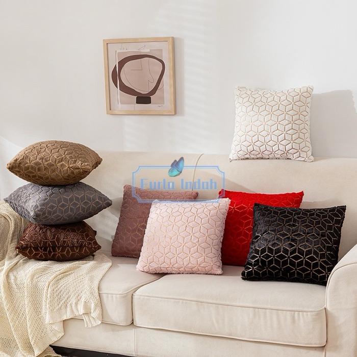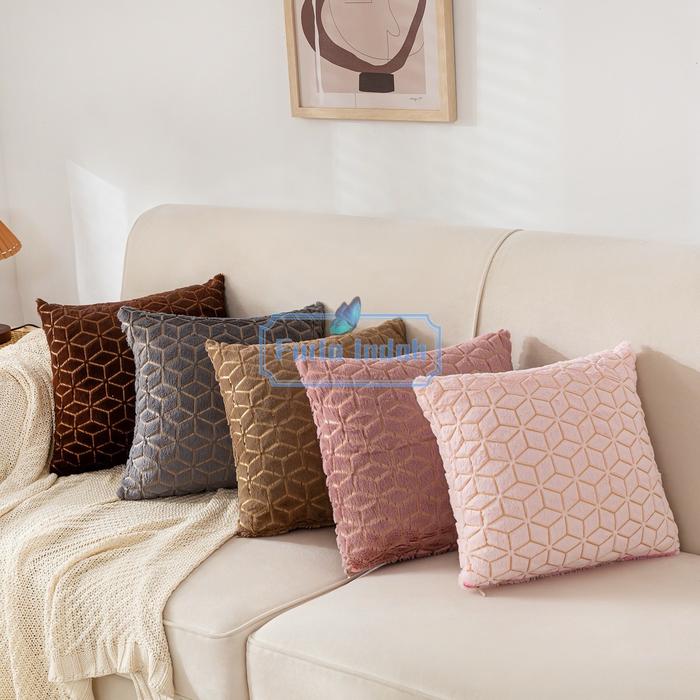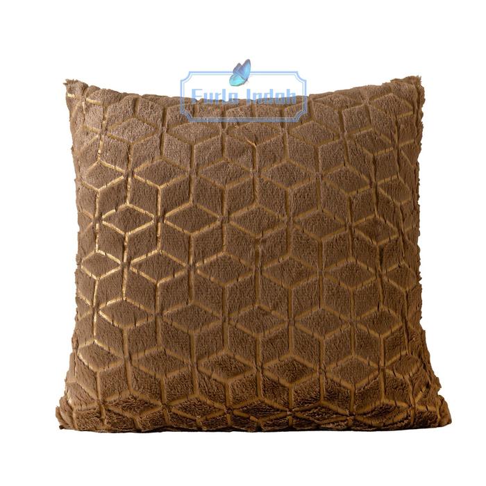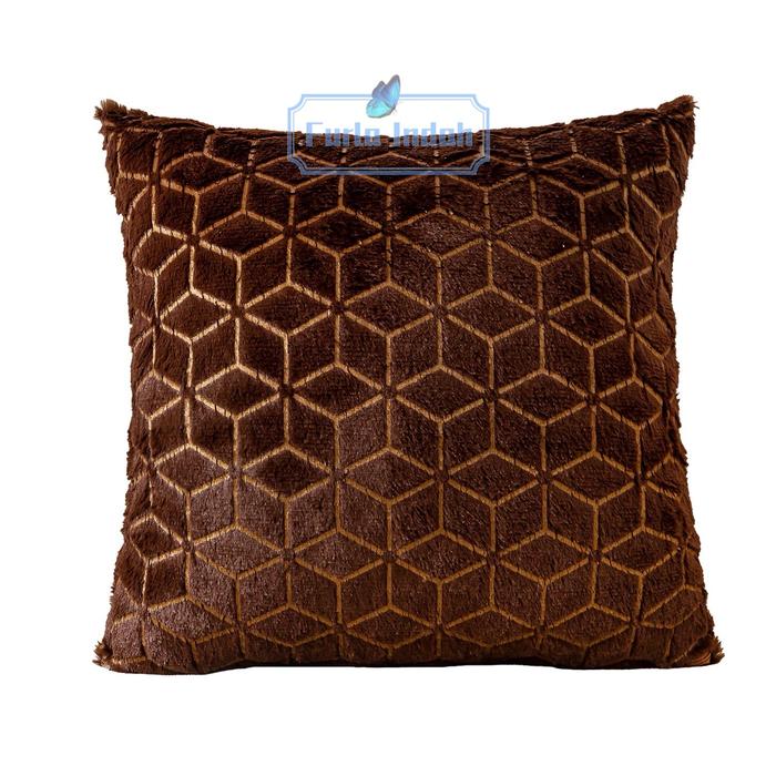 TERLARIS SARUNG BANTAL SOFA BULU MEWAH SARUNG BANTAL KURSI BULU MEWAH 40X40CM TYPE SB006# COKLAT TUA