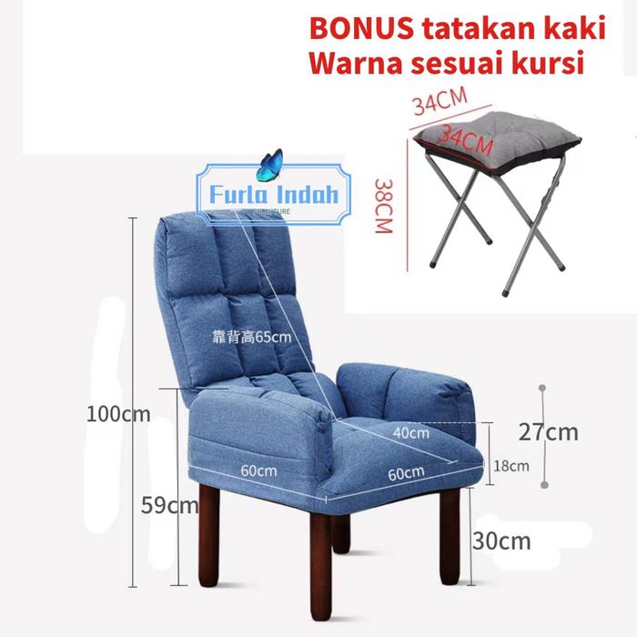 TERLARIS KURSI SANTAI LIPAT KURSI SOFA SOFA SINGLE KURSI RECLINING TYPE V2# BIRU MUDA