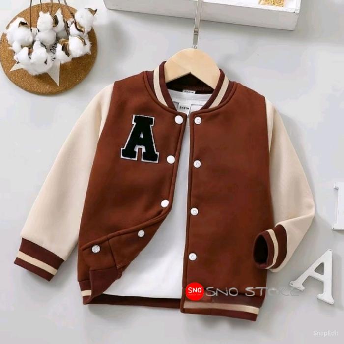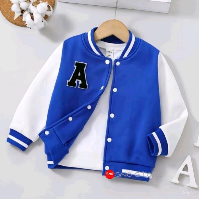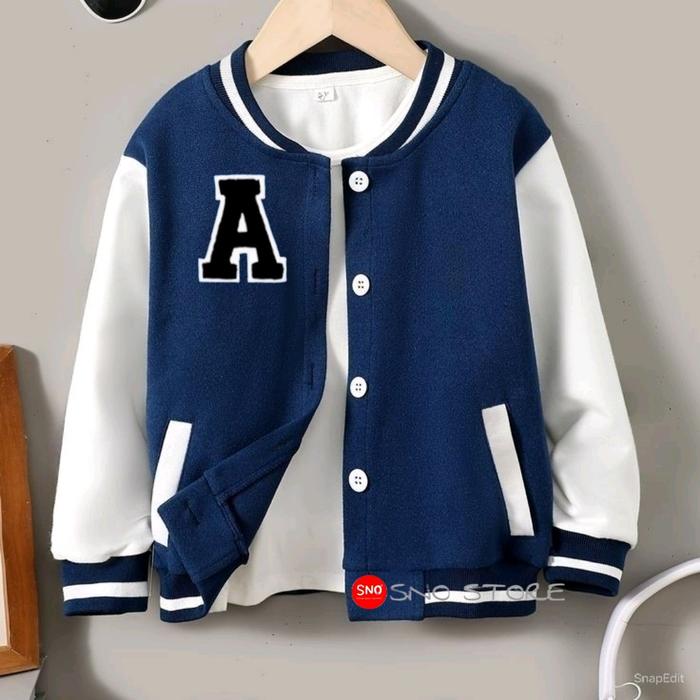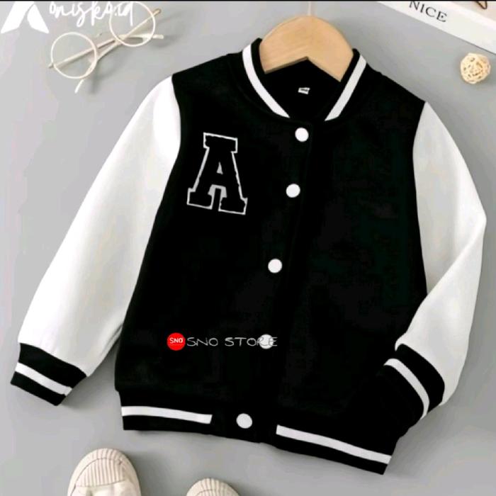 TERLARIS JAKET ZIPPER VARSITY BASEBALL INISIAL A (BISA CUSTOM INISIAL) UNISEX LAKI LAKI PEREMPUAN OVER SIZE (2 12) USIA