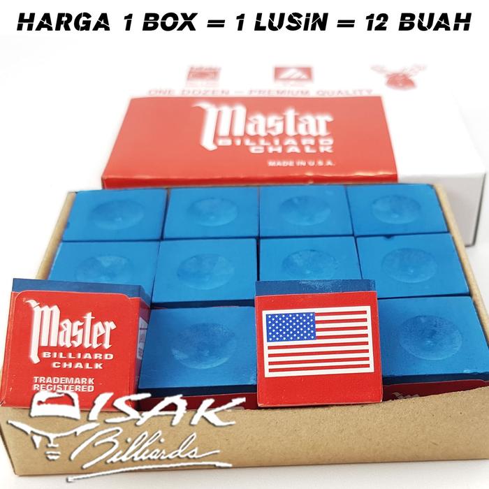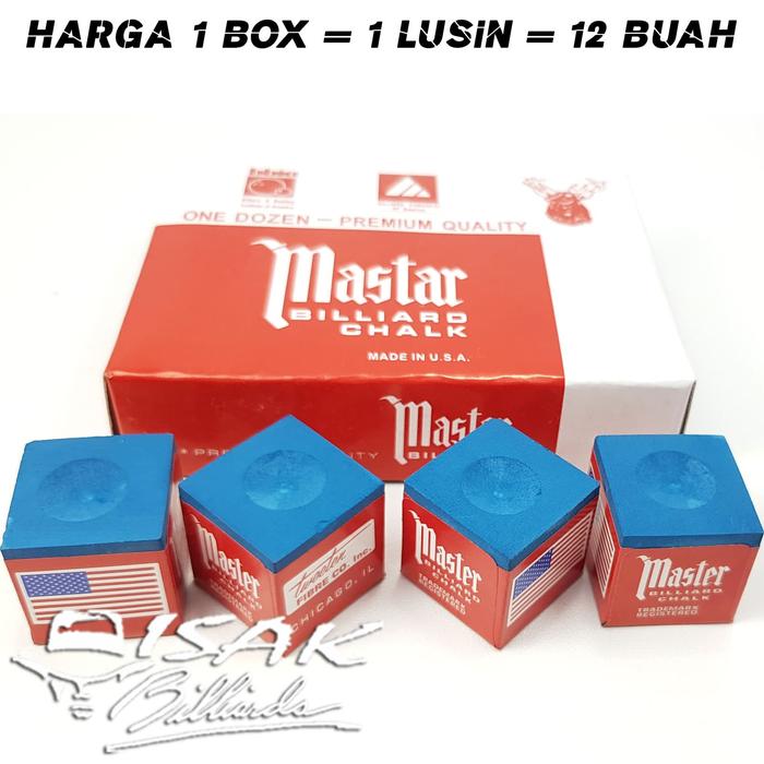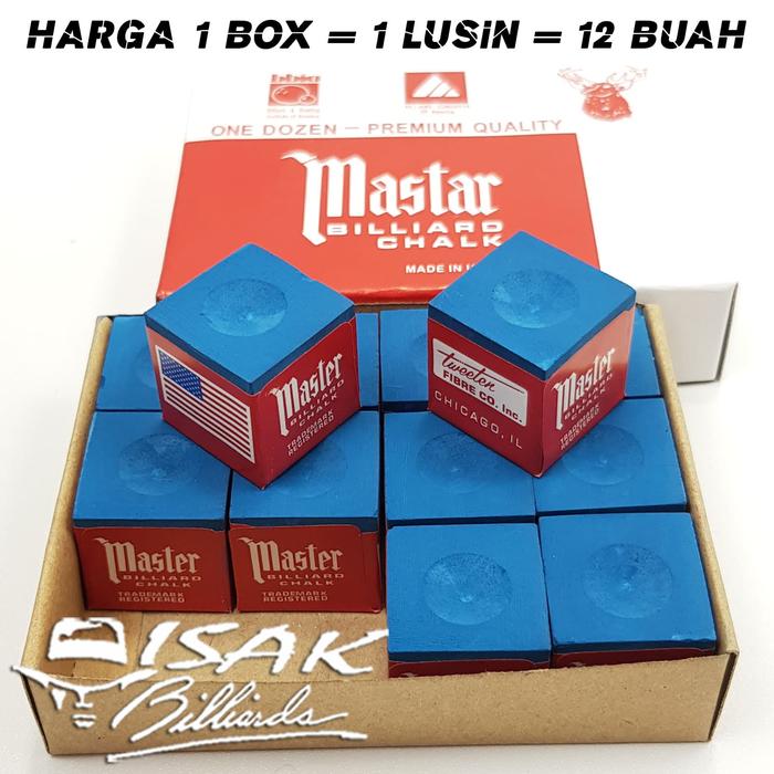 TERLARIS MASTER CHALK CHINA KW BOX 12 PCS KAPUR BILIAR BILLIARD CUK BILYARD