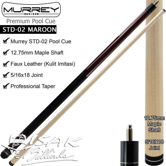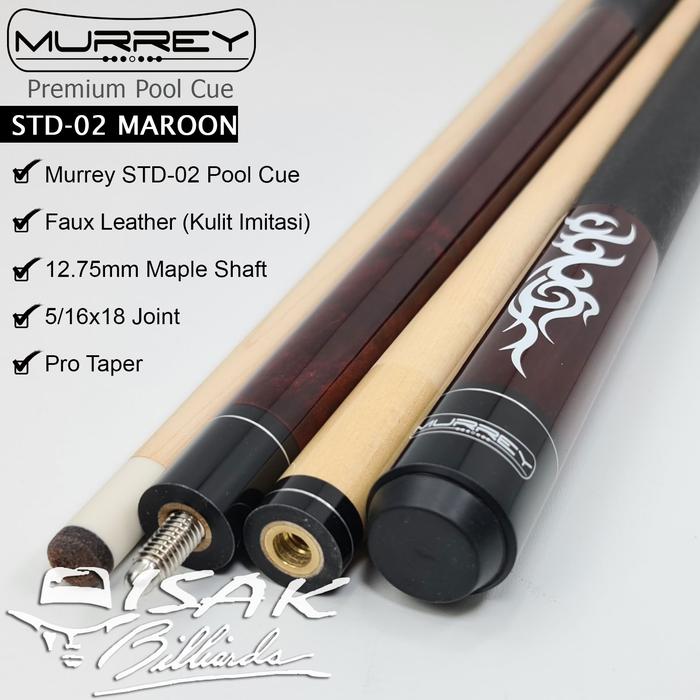 TERLARIS MURREY STD2 MAPLE POOL BILLIARD CUE STICK STIK BILIAR MAROON
