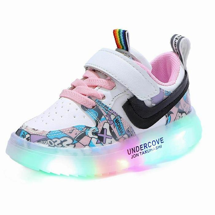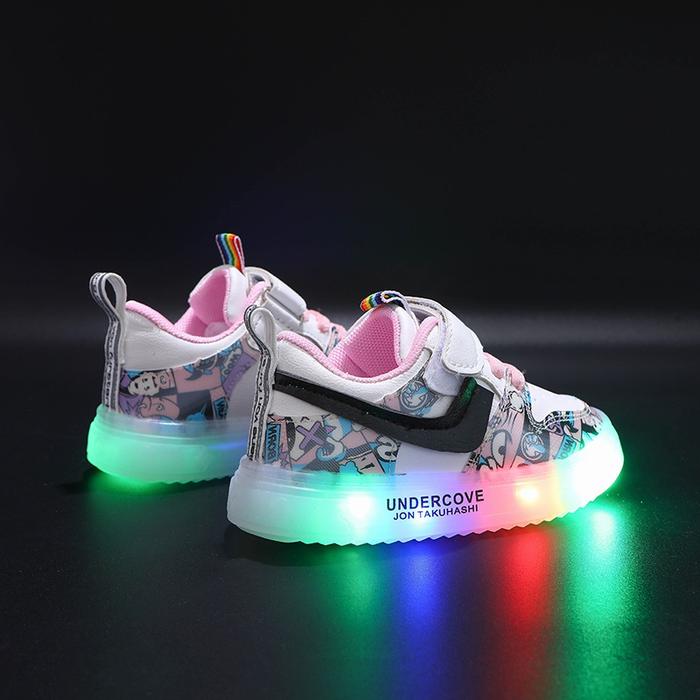 SEPATU ANAK LAMPU LED IMPORT TAKKUHA BALITA LAKI LAKI PEREMPUAN 1-5TH - MERAH MUDA, 23