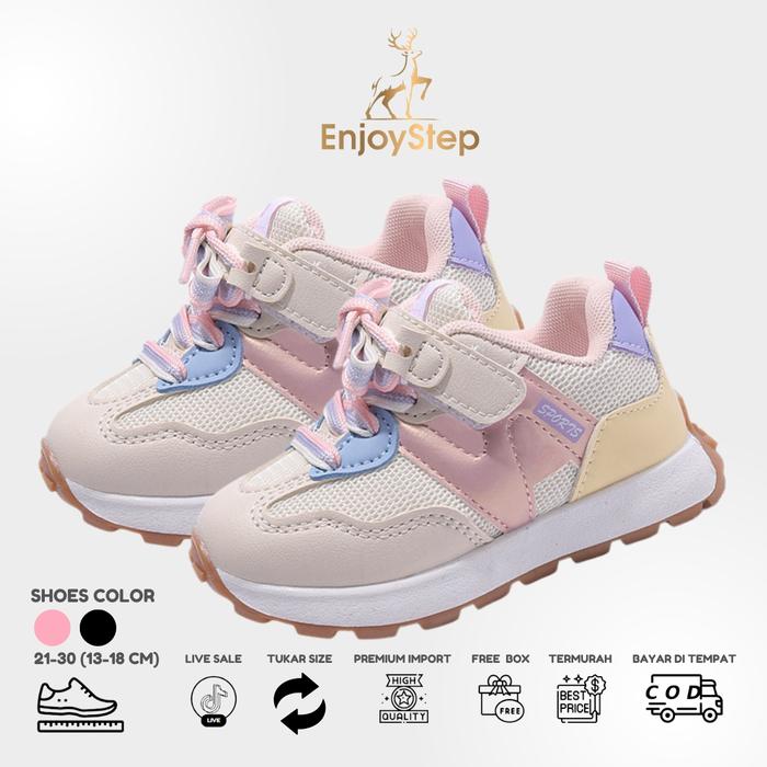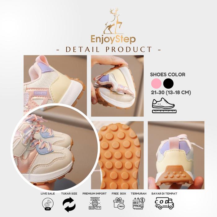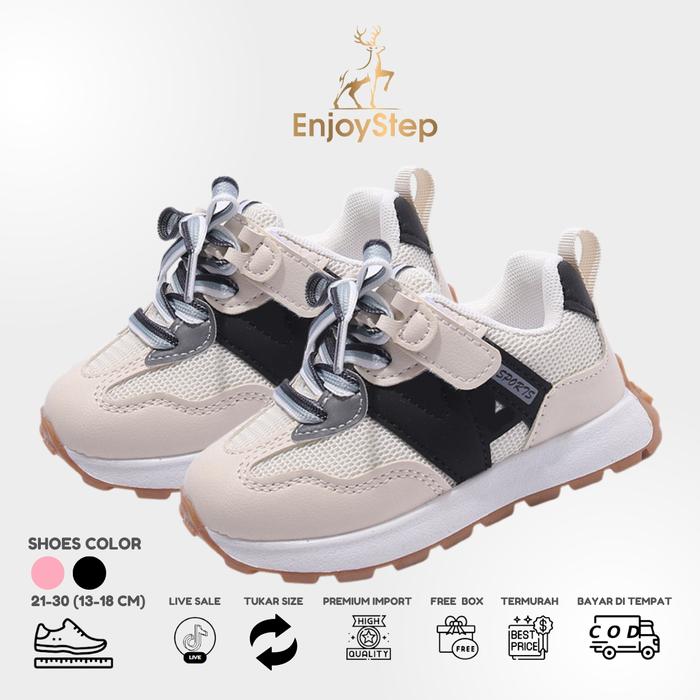 ENJOYSTEP - SEPATU SNEAKERS ANAK IMPORT PREMIUM QUALITY S168 FASHION - BLACK, SIZE 21 = 13 CM