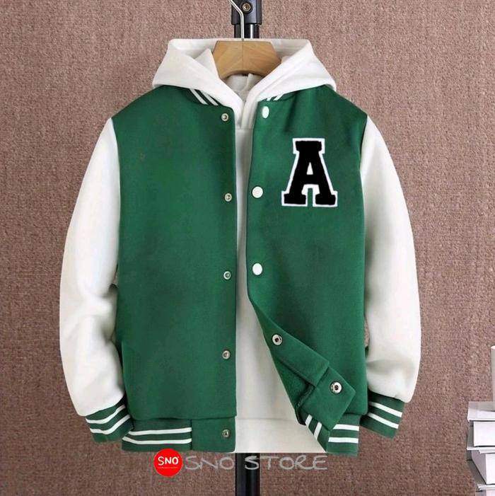 TERLARIS JAKET HOODIE BIG SIZE UNISEX PRIA WANITA (S6XL)LOGO INISIAL A (BISA CUSTOM HURUF) JAKET BASEBALL SNO STORE PREM
