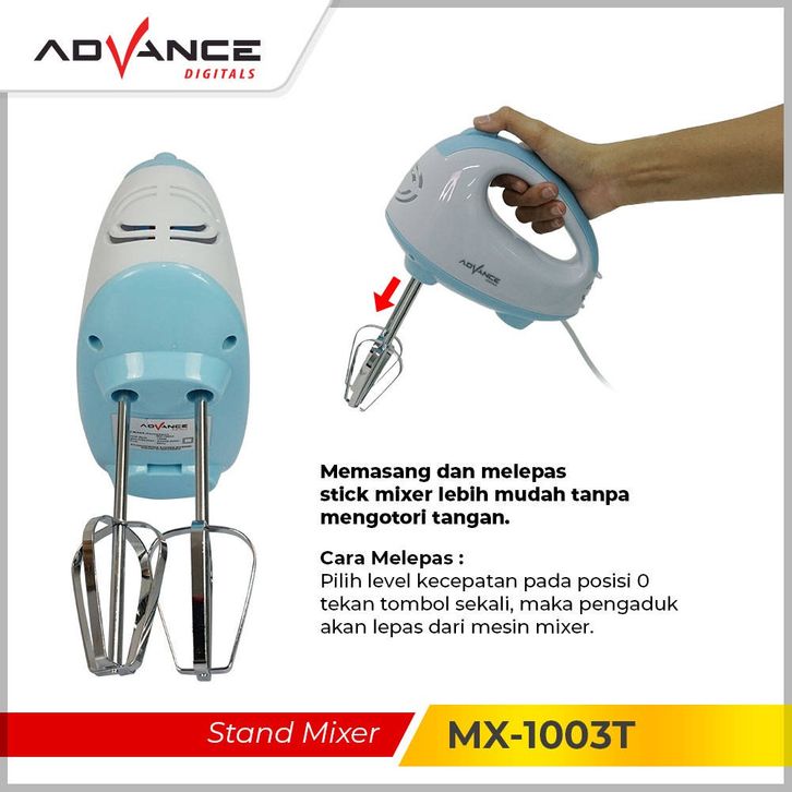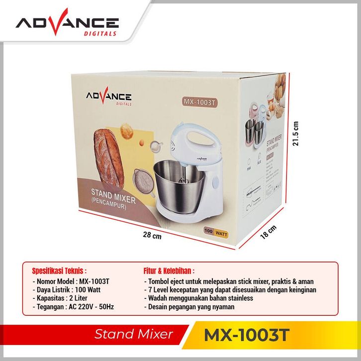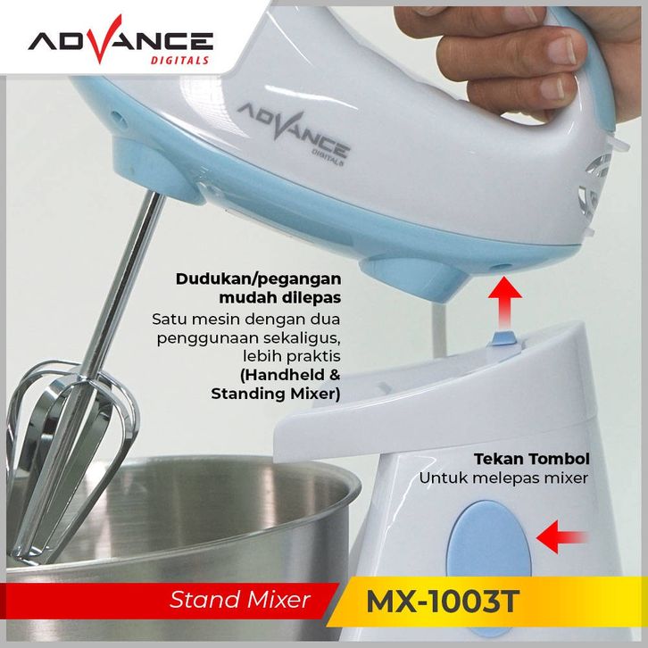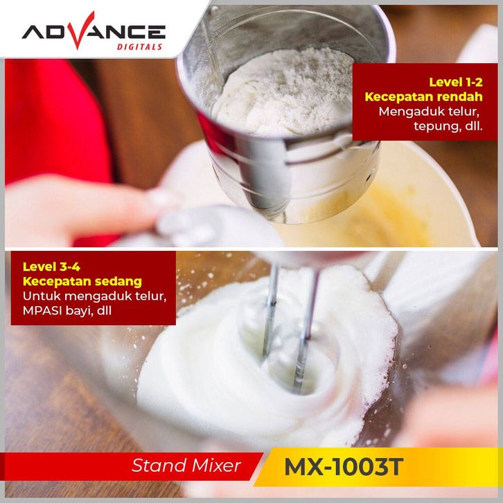 Stand Mixer Advance Mx-1003T Mangkuk Stainles + 2L Pengocok Telur Mesin Roti 7 Kecepatan Pengaduk