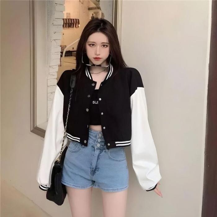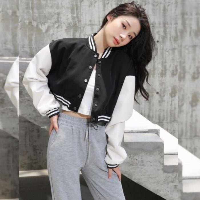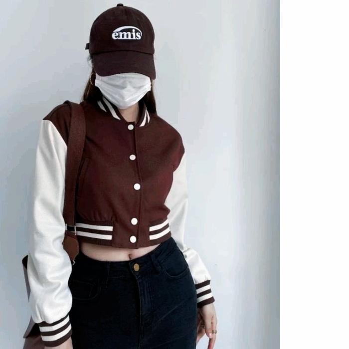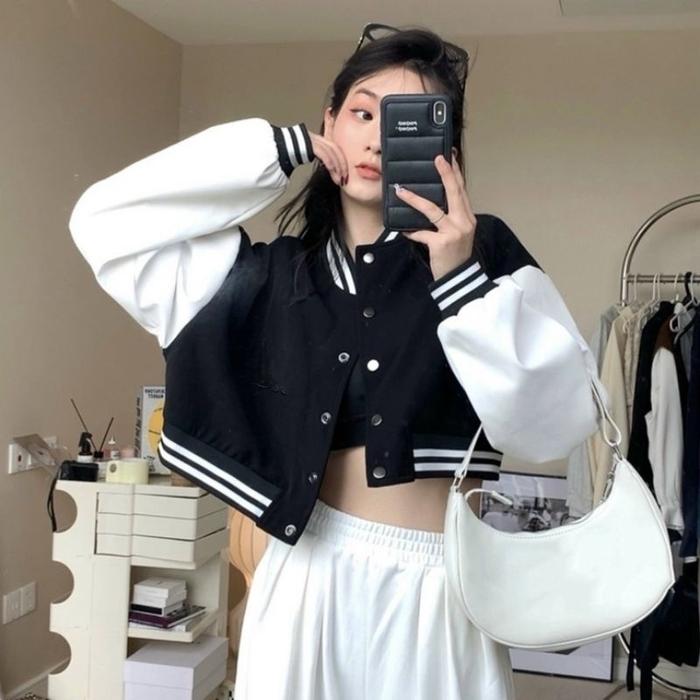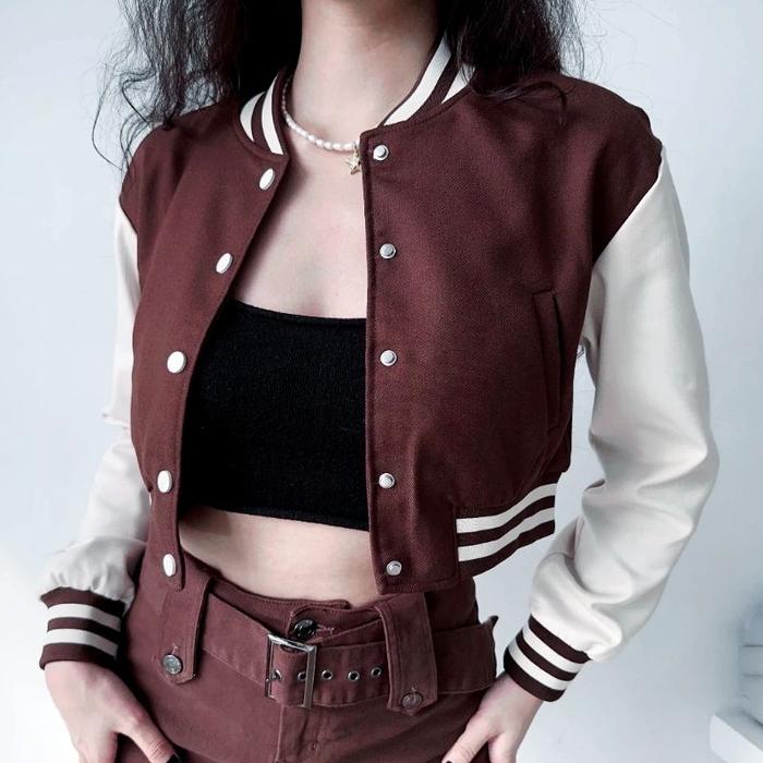TERLARIS JAKET BASEBALL VARSITY CROP BIG SIZE ( S 6XL ) JACKET BISBOL CROPTOP KANCING BOMBER POLOS ULZZANG OVERSIZED XX