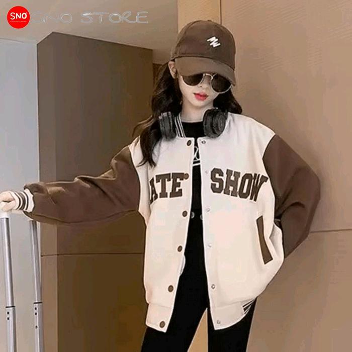TERLARIS JAKET VARSITY BASEBALL ANAK PEREMPUAN LAKI LAKI IMPORT KOREA PREMIUM 112 TAHUN CUSTOM SABLON NAMA DENIM BIRU CR