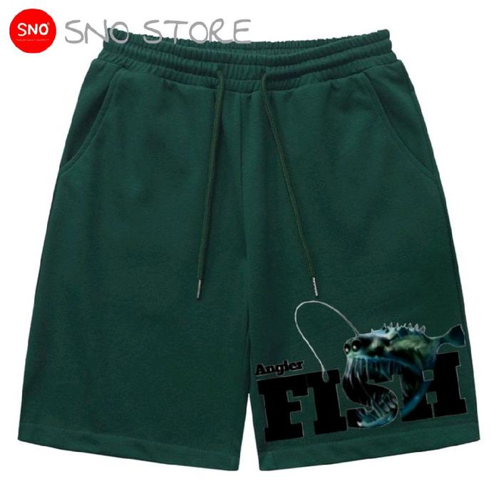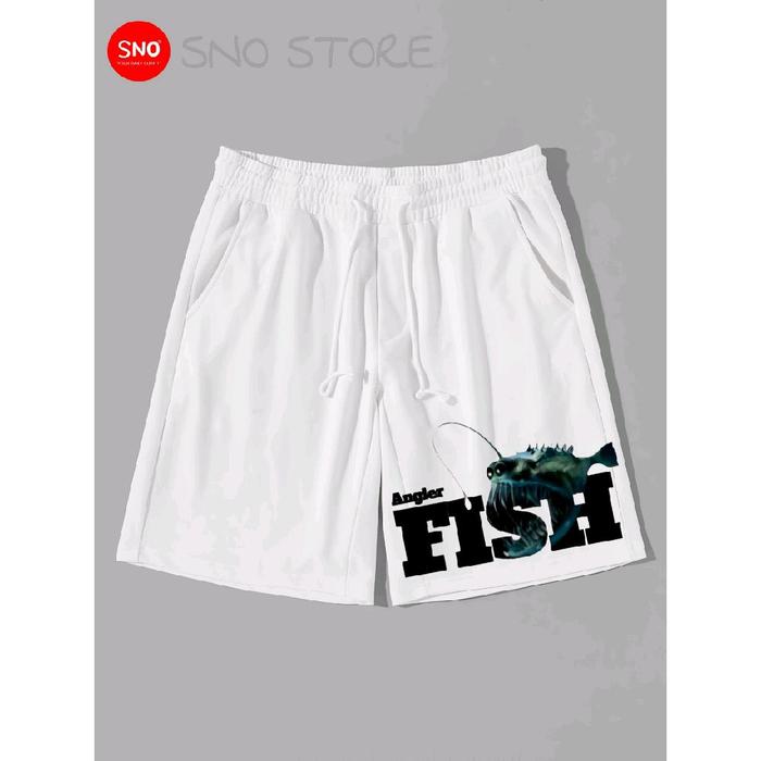 TERLARIS CELANA PENDEK PRIA BIGSIZE (S5XL) SHORT PANT DEWASA JUMBO MOTIF ANGLERFISH 3D PREMIUM TEBAL DUA SAKU PUTIH S