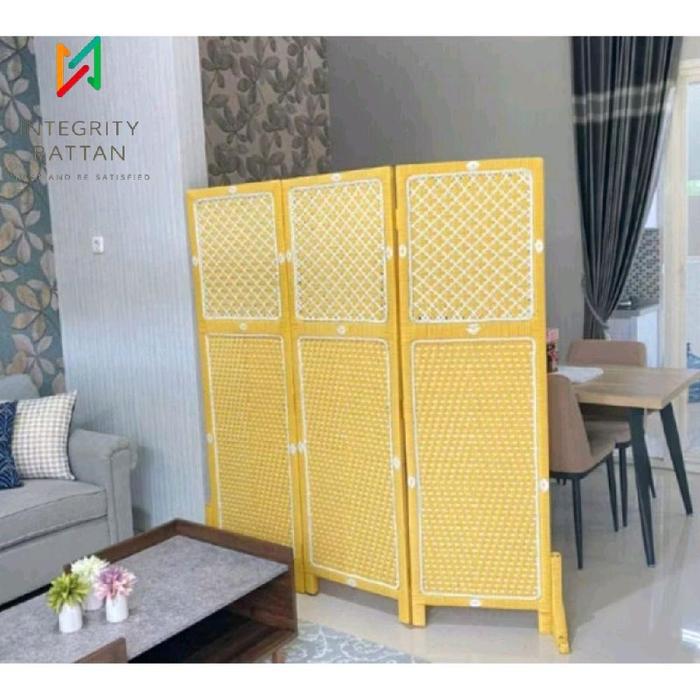 Sketsel Pintu Penyekat Ruangan Motif Anyaman Rotan Sintetis Furniture Sekat Ruangan