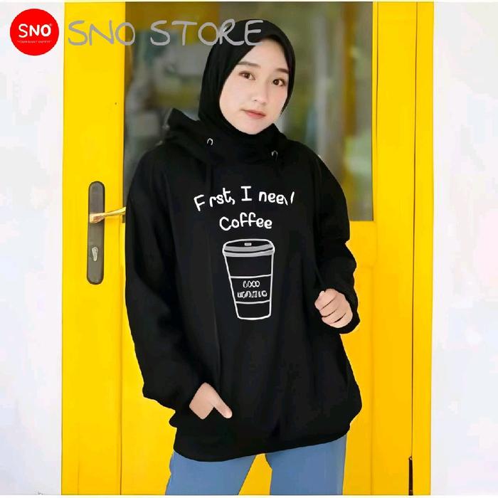 TERLARIS JAKET SWEATER HOODIE WANITA PREMIUM COFFEE BIG SIZE (S 5XL) FIRST I NEED COFFEE OVERSIZE S M L XL 2XL 3XL 4XL
