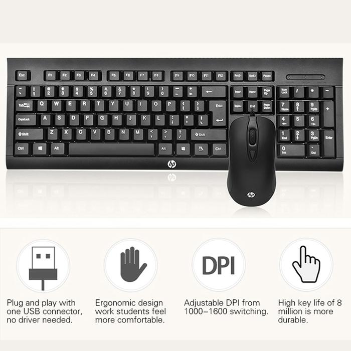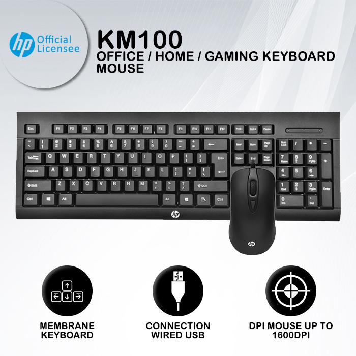 FLASH SALE KEYBOARD MOUSE COMBO HP KM100MEMBRANE KEYBOARD & 1600DPI MOUSE USBHITAM