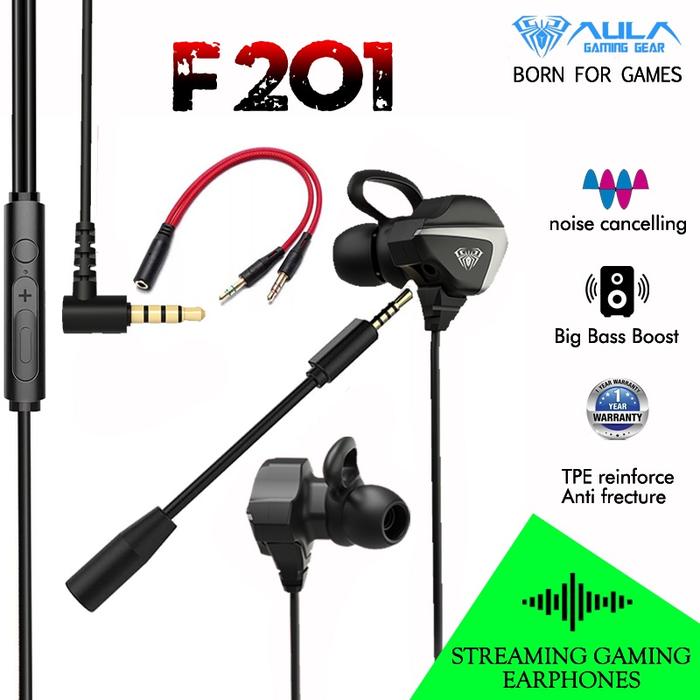 FLASH SALE EARPHONE GAMING AULA F201PCMOBILE DENGAN SPLITER JACKELEGANT DESAINGAMING EARPHONE