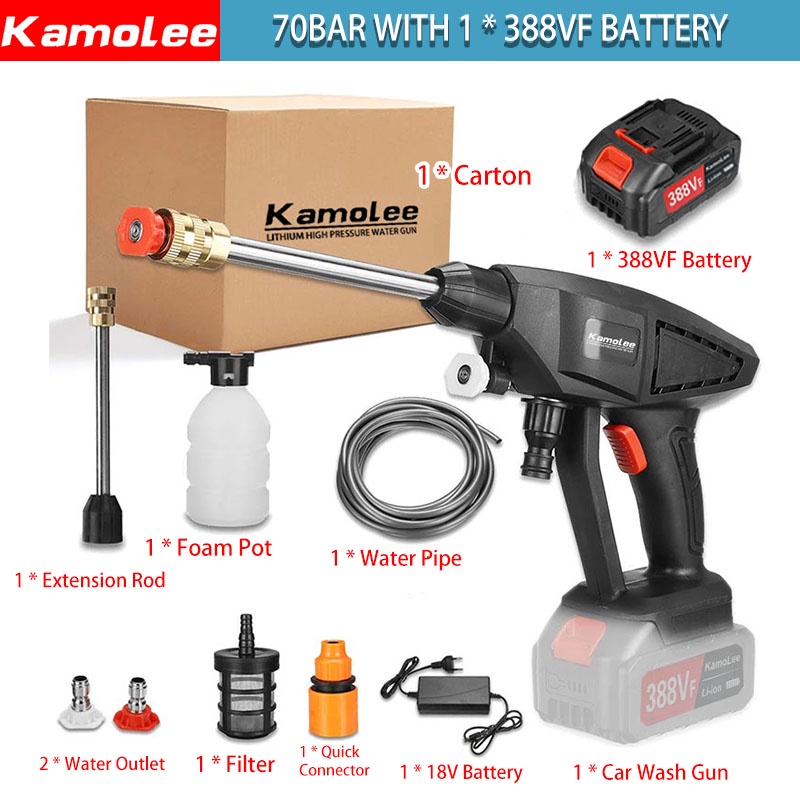Kamolee 70Bar High Pressure Car Wash Gun Watering Flowers Washing Spraying Pesticides With 1 x 388VF Battery Carton Set