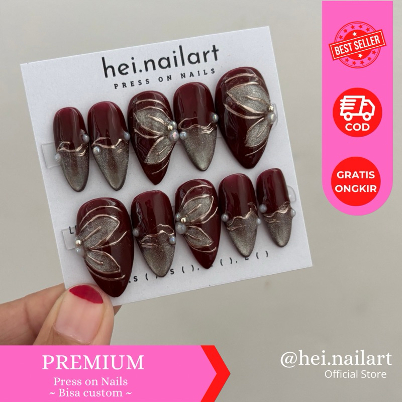 (PREMIUM) butterfly cat eyes press on nails kuku palsu graduation engangement wedding nail art