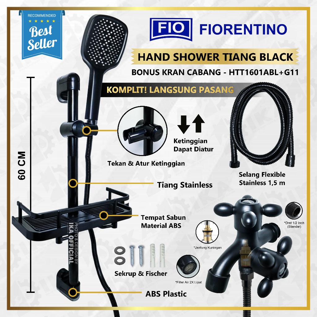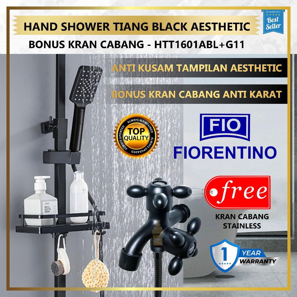 TERMURAH paket shower tiang stainless hitam FIORENTINO + kran cabang PROMO TERMURAH Black elegan mewah minimalis anti ka