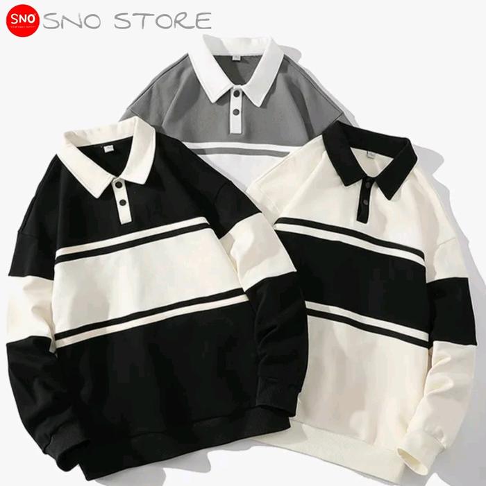 TERLARIS SWEATER VINTAGE RUGBY PRIA WANITA LIST KANCING BIGSIZE (S6XL) SWEATER SNO STORE PREMIUM OVERSIZE LAKI LAKI PERE