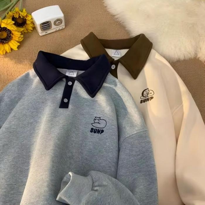 TERLARIS SWEATER CAT CUTE MEAW SUNP KERAH POLO COLLAR BIG SIZE ( S 6XL ) CREWNECK MIX TWO TONE JAKET PRIA WANITA M L XL
