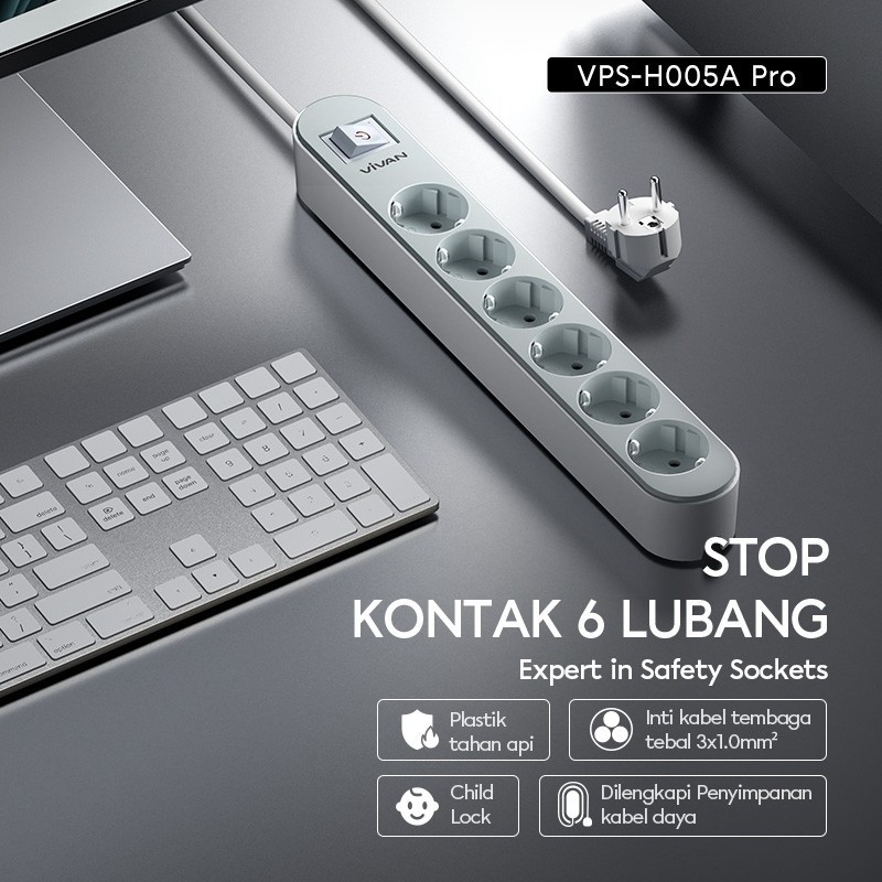 VIVAN SAFETY SOCKET VPS PRO SERIES STOP KONTAK SAKLAR SOCKET 3 - 6 SLOT KABEL INTI TEMBAGA MURNI PLASTIK TAHAN API CHILD LOCK 1,8M GARANSI 36 BULAN
