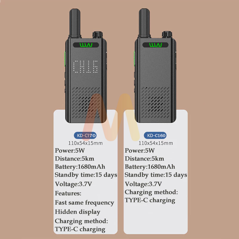 1/2PCS HT WLN WALKIE TALKIE KD-C170/KD-C160 - HT SLIM UHF 400-470 MHZ WATERPROOF PORTABLE WALKY TALKY JARAK JAUH 10KM (MAX) 2 WAY RADIO WALKIE TALKIES HT HANDY TALKY