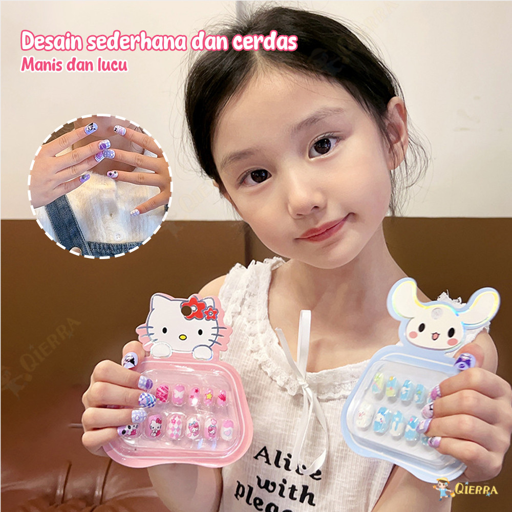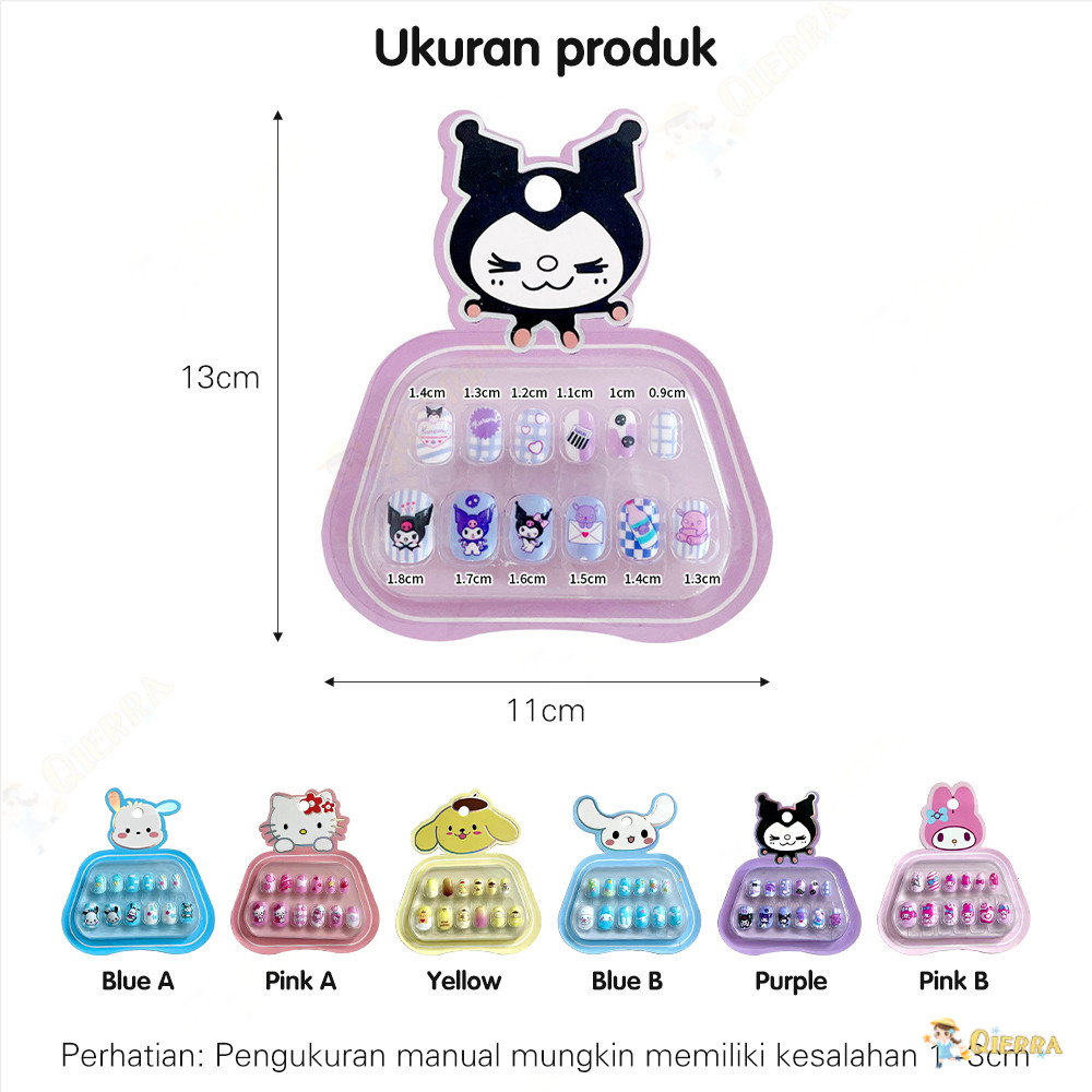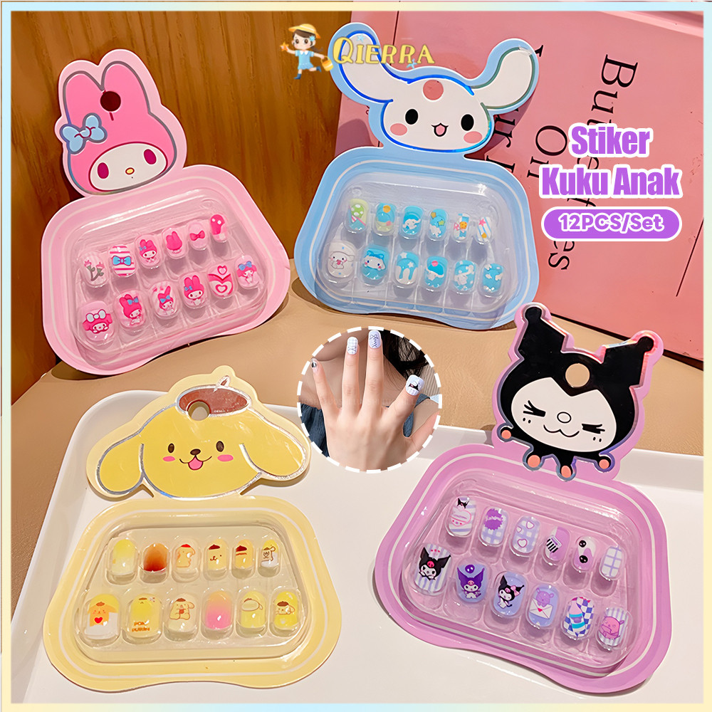 Qierra Kuku Palsu Nail Art Anak Set 12PCS Fake Nail Stickers Dekorasi Stiker Kuku