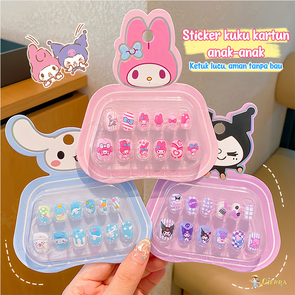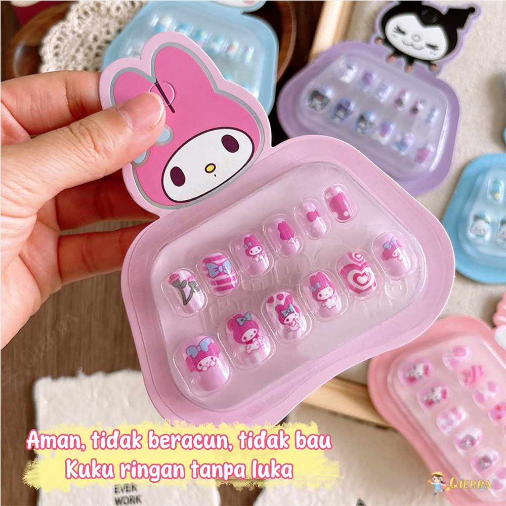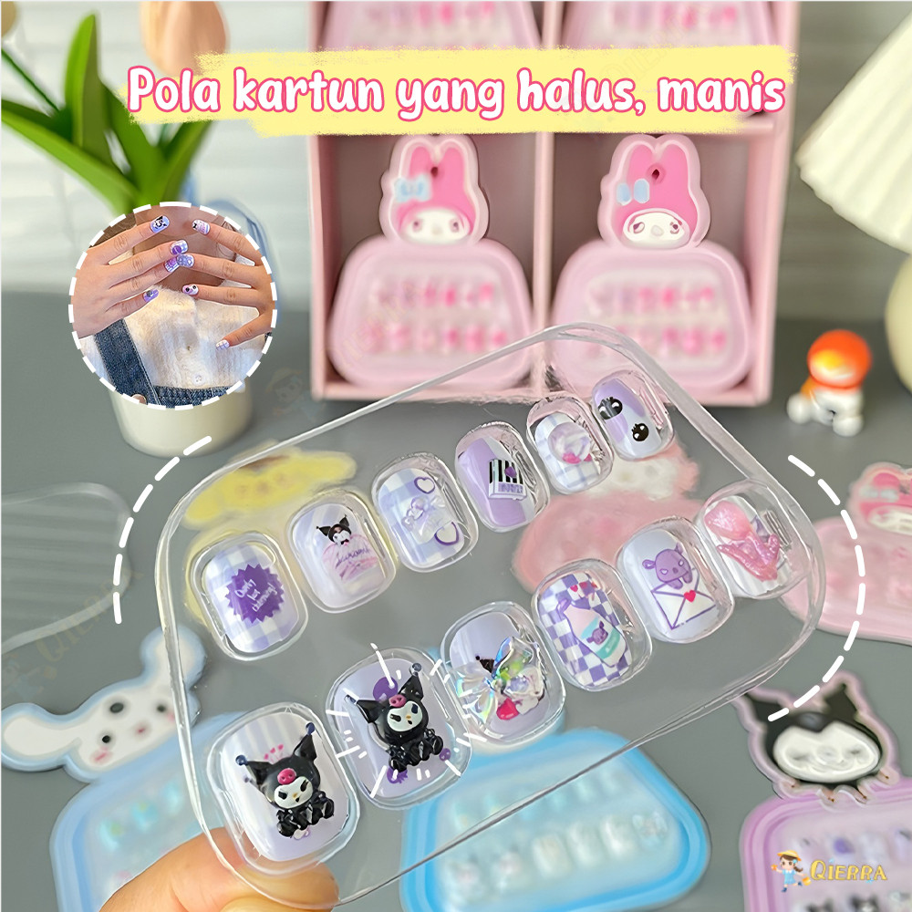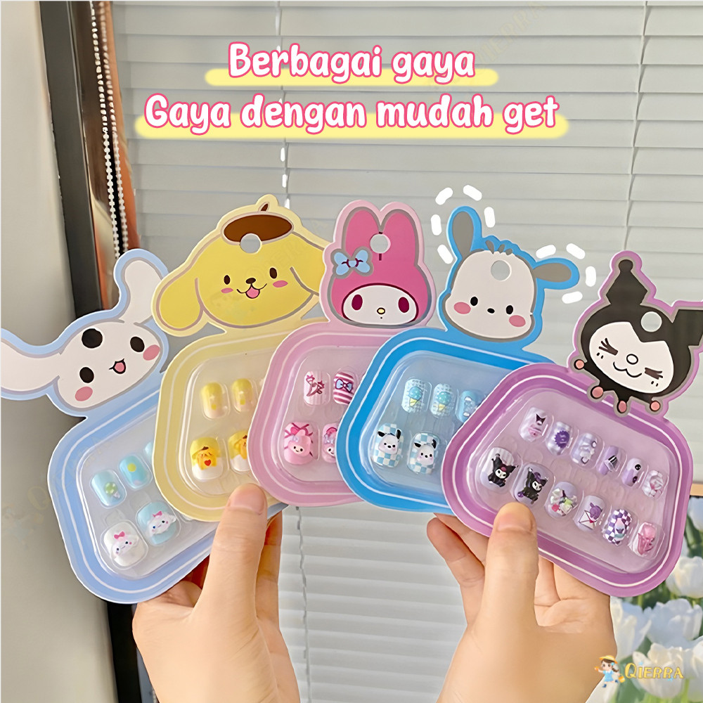 Qierra Kuku Palsu Nail Art Anak Set 12PCS Fake Nail Stickers Dekorasi Stiker Kuku