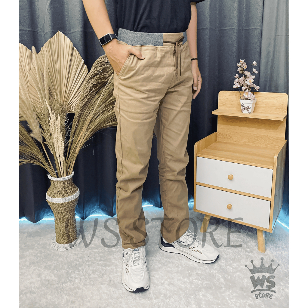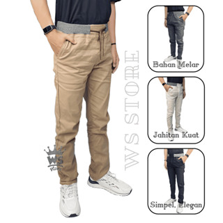 (Gratis Ongkir) Celana Pria Chino Panjang Pinggang Karet Katun Strecth Premium Slimfit