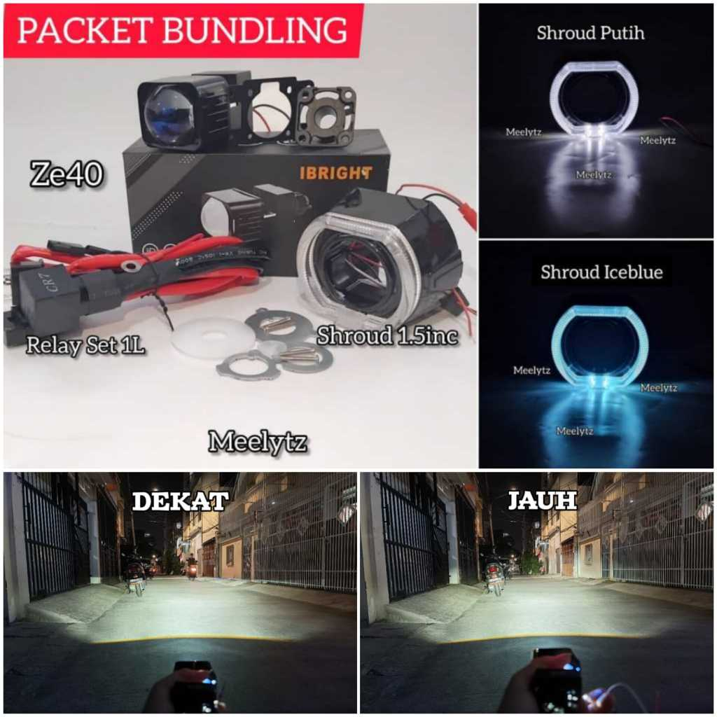 PACKET BUNDLING - PROJECTOR BILED MATRIX X1 1.5INC IBRIGHT ZE40 PLUS RELAY SET 1 LAMPU DAN SHROUD BLACK 1.5INC