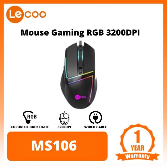 FLASH SALE MOUSE GAMING LECOO MS106 RGB COLORFUL3200DPI WIRED CABLE CONNECTION