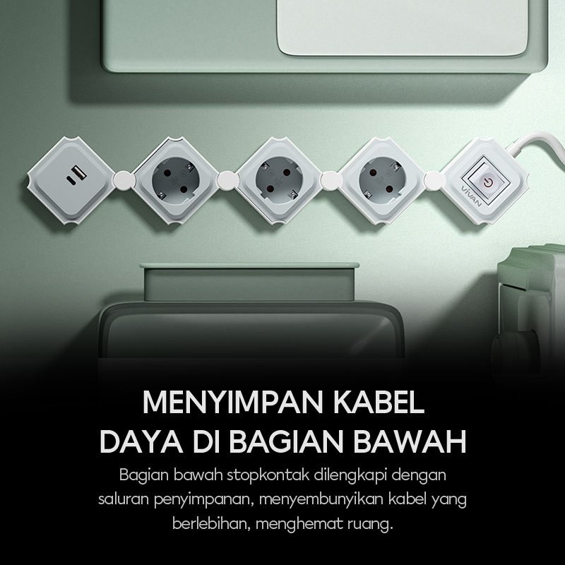 VIVAN SAFETY SOCKET STOP KONTAK + KABEL 1.8 METER DENGAN 3-6 LUBANG USB A + TYPE C ADAPTOR STEKER POWER STRIP VPS-H PRO SERIES GARANSI 3 TAHUN