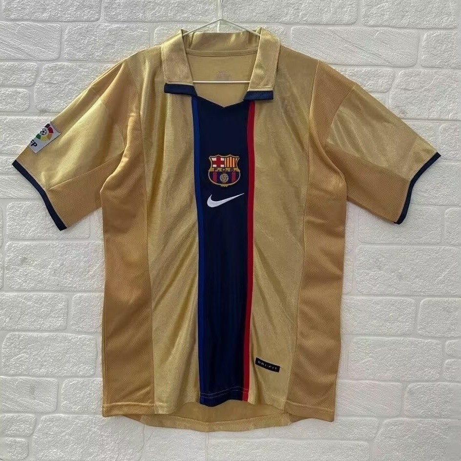Jersey Balap Retro Barcelona 01 ~ 02 Setelan Sepak Bola Lengan Pendek Kustomisasi Olahraga Sulam Barcelona