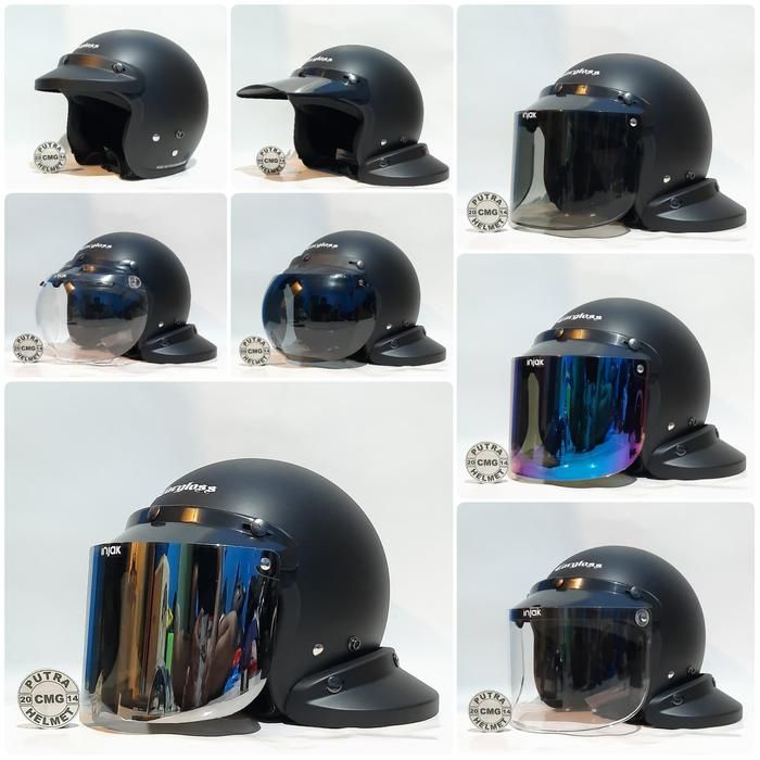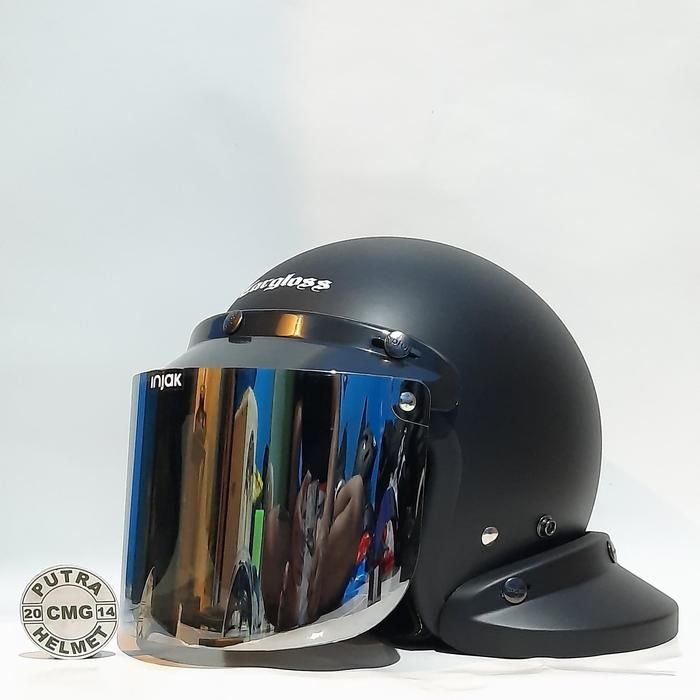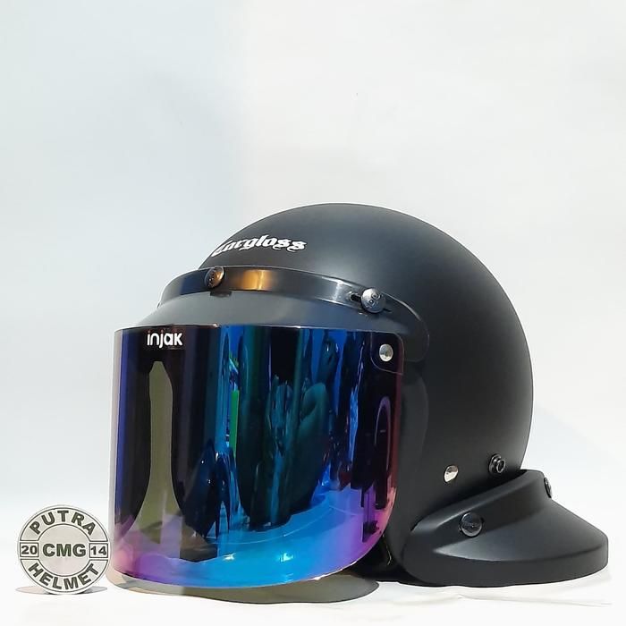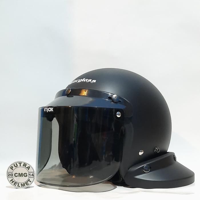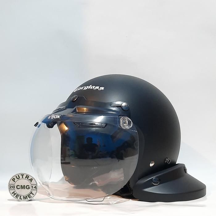 PROMO PAKET HELM CARGLOSS CFM RETRO BLACK DOFF HITAM KACA FLAT CEMBUNG