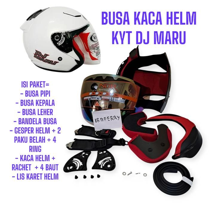 Paket komplit busa dan kaca visor bening helm kyt dj maru kancing besi