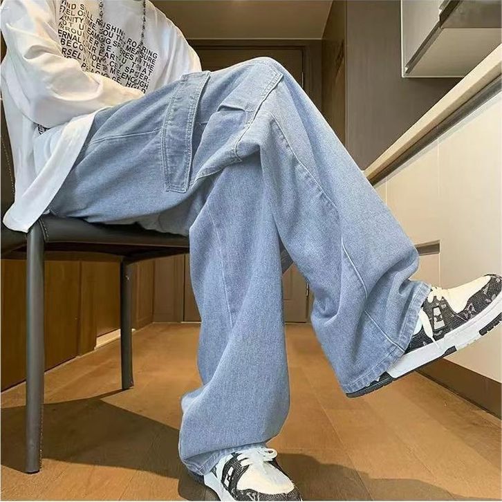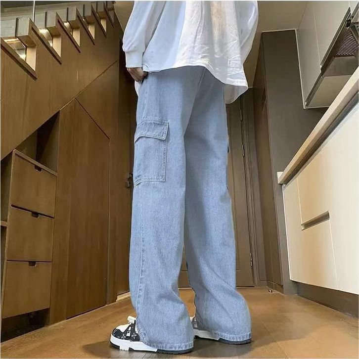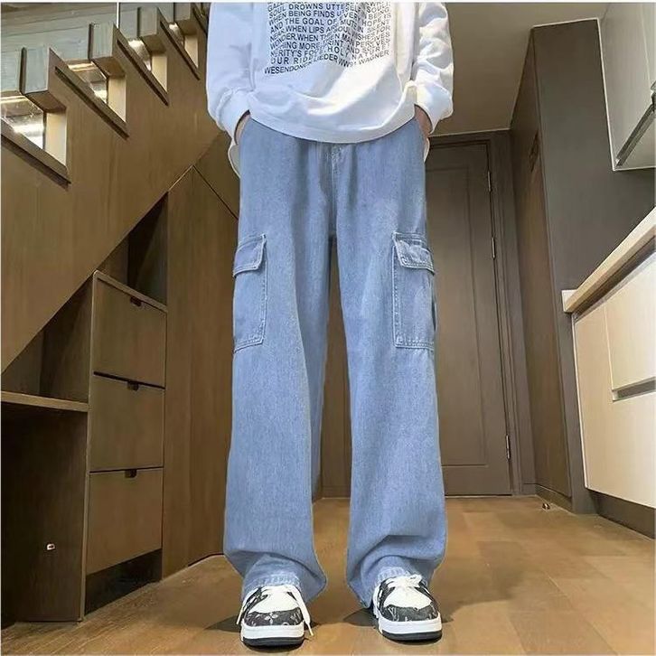 KeyBoy Celana jeans pria cargo panjang baggy kulot celana straight dewasa kargo denim pants cowok casual korean style