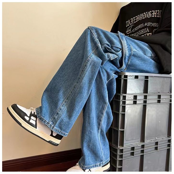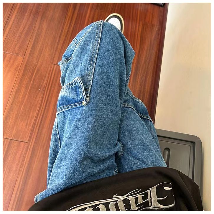 KeyBoy Celana Cargo jeans pria panjang cowok Korean style baggy pants kargo celana denim dewasa casual 2025