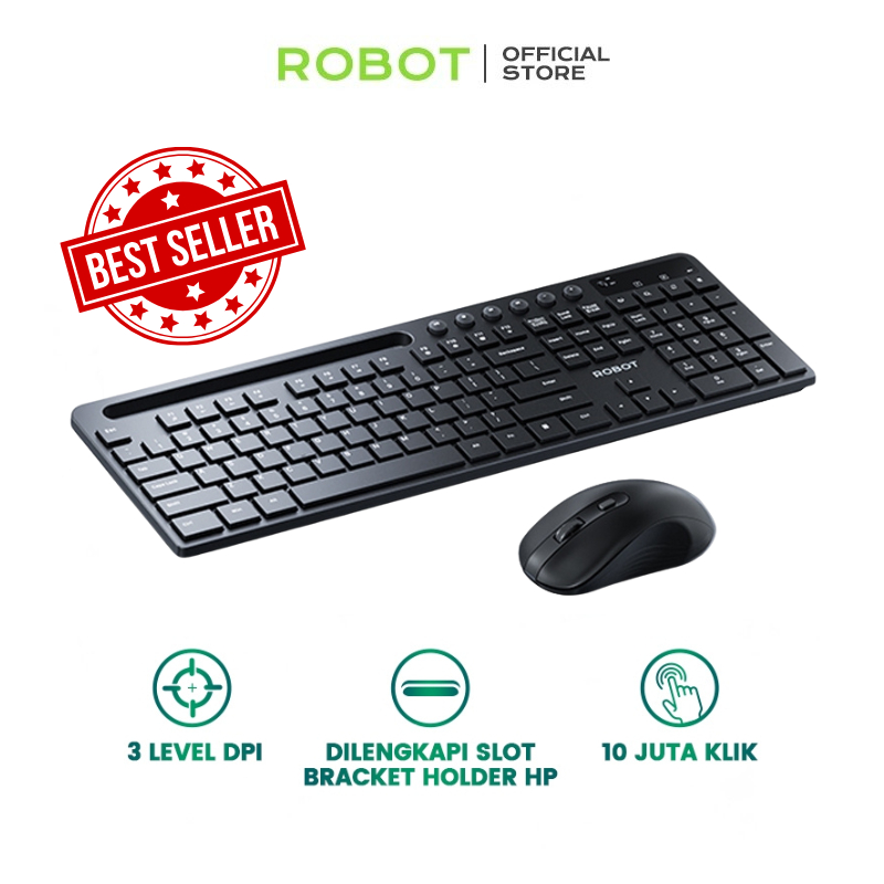 KEYBOARD WIRELESS ROBOT SET COMBO KEYBOARD DAN MOUSE TANPA KABEL PORTABLE TIPE KM3500 ORIGINAL GARANSI 1 TAHUN ORIGINAL