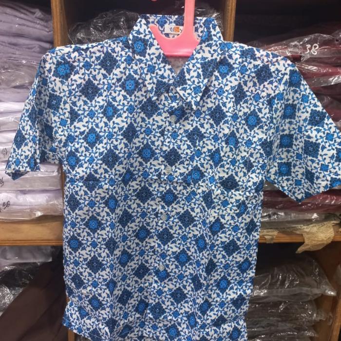 TERLARIS SERAGAM BATIK SEKOLAH PENDEK WARNA BIRU SIZE 15 16