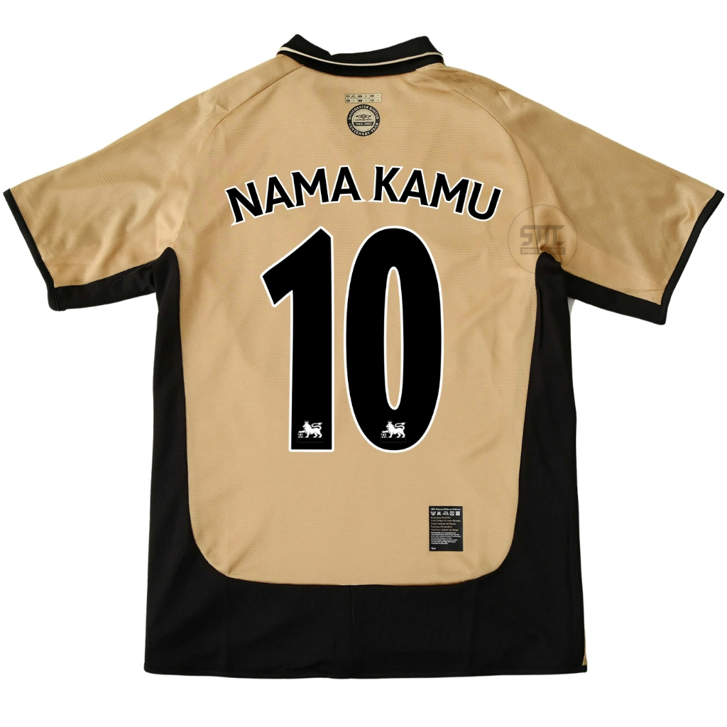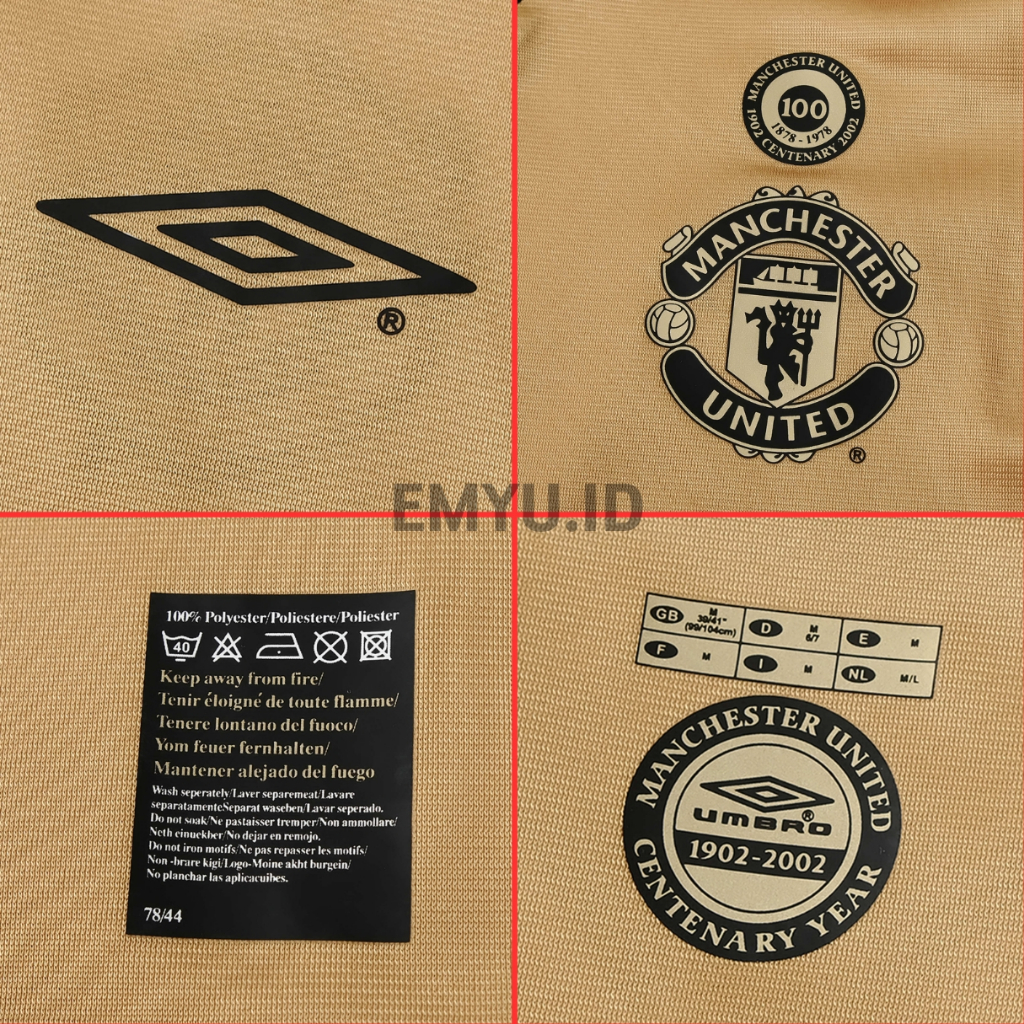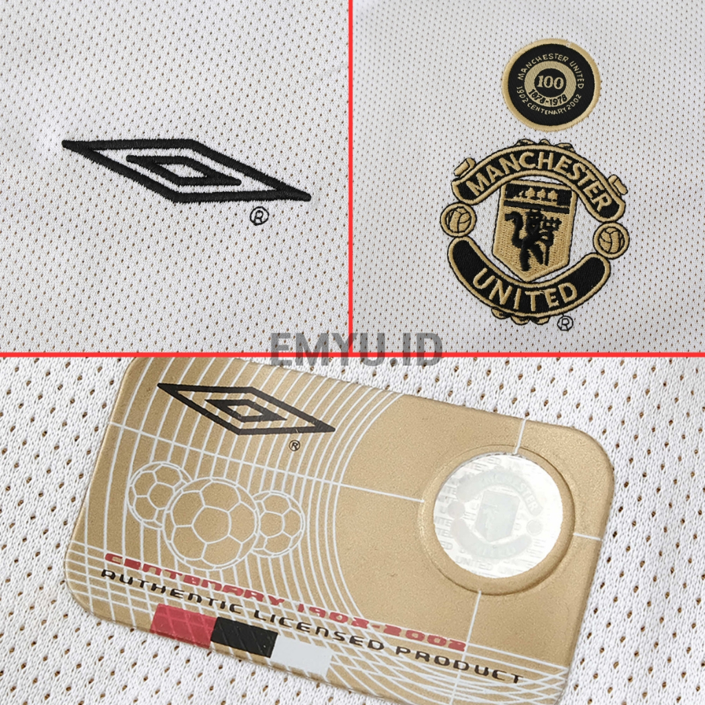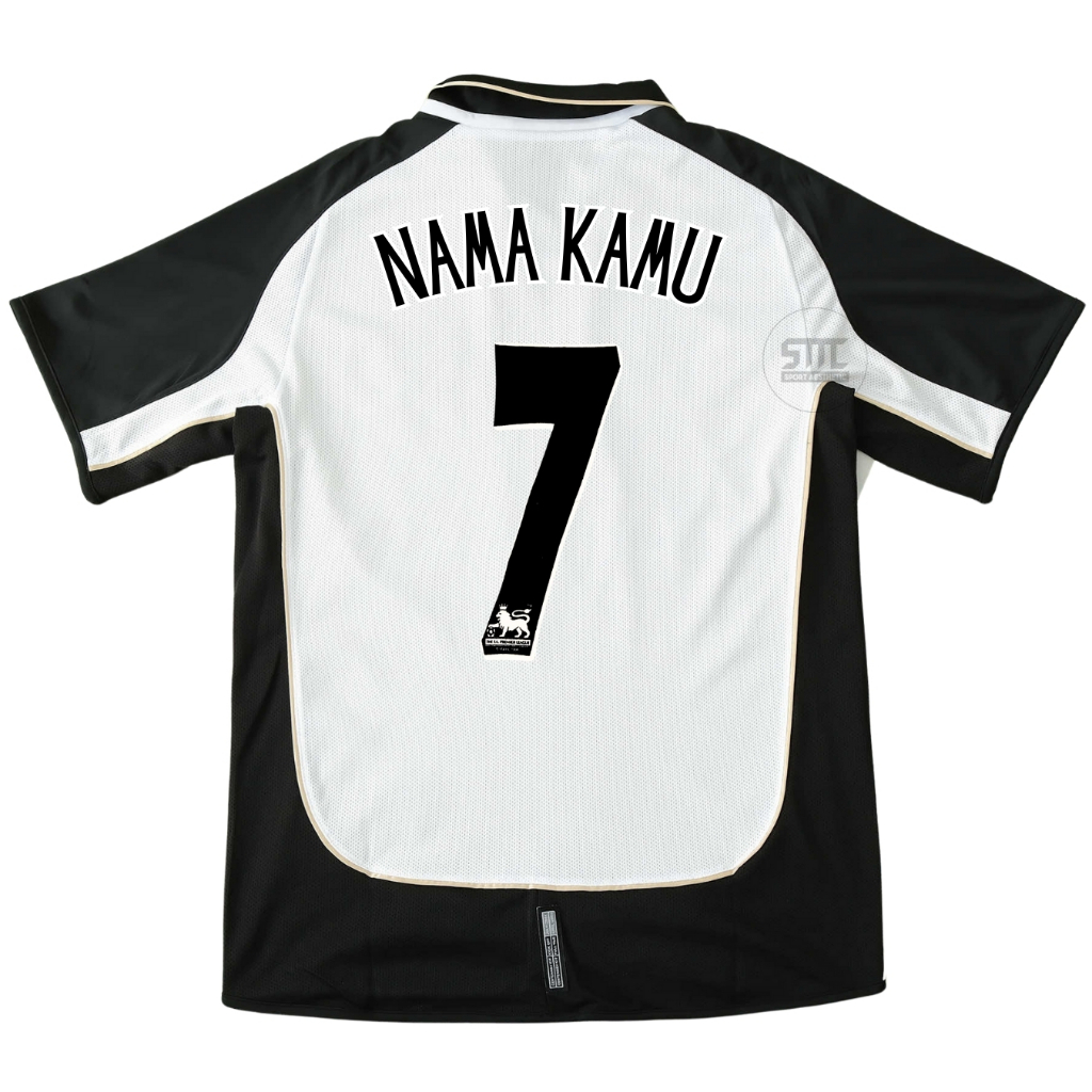Jersey Retro Mnchstr Untd Away Riversible 2001/2002 Baju Bola Putih Gold bolak balik 01 02 JTI