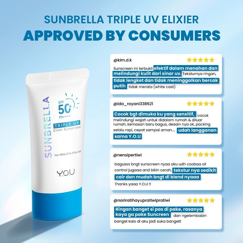 YOU Sunbrella Triple UV Elixir Sunscreen SPF50+ PA++++ tabir surya oil control sunblock sunscreen Y.O.U you You Sun Brel