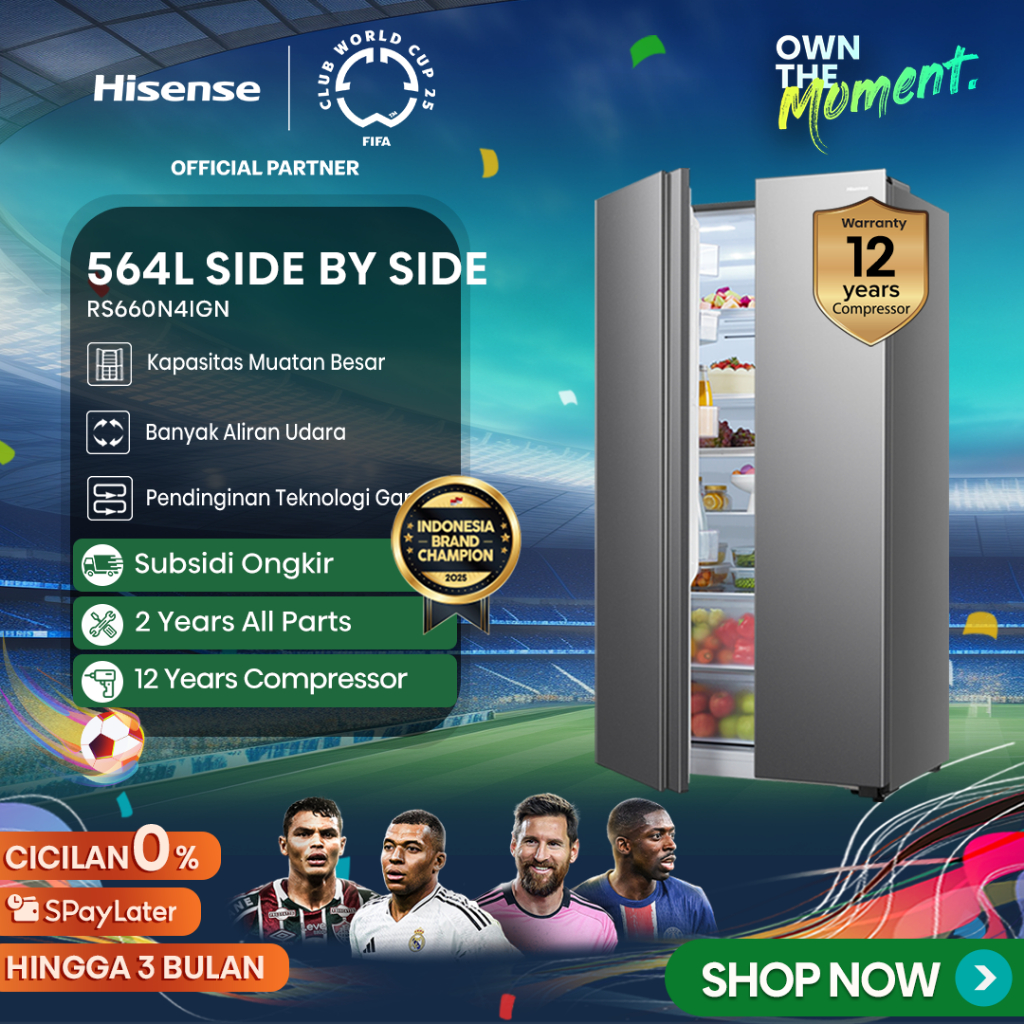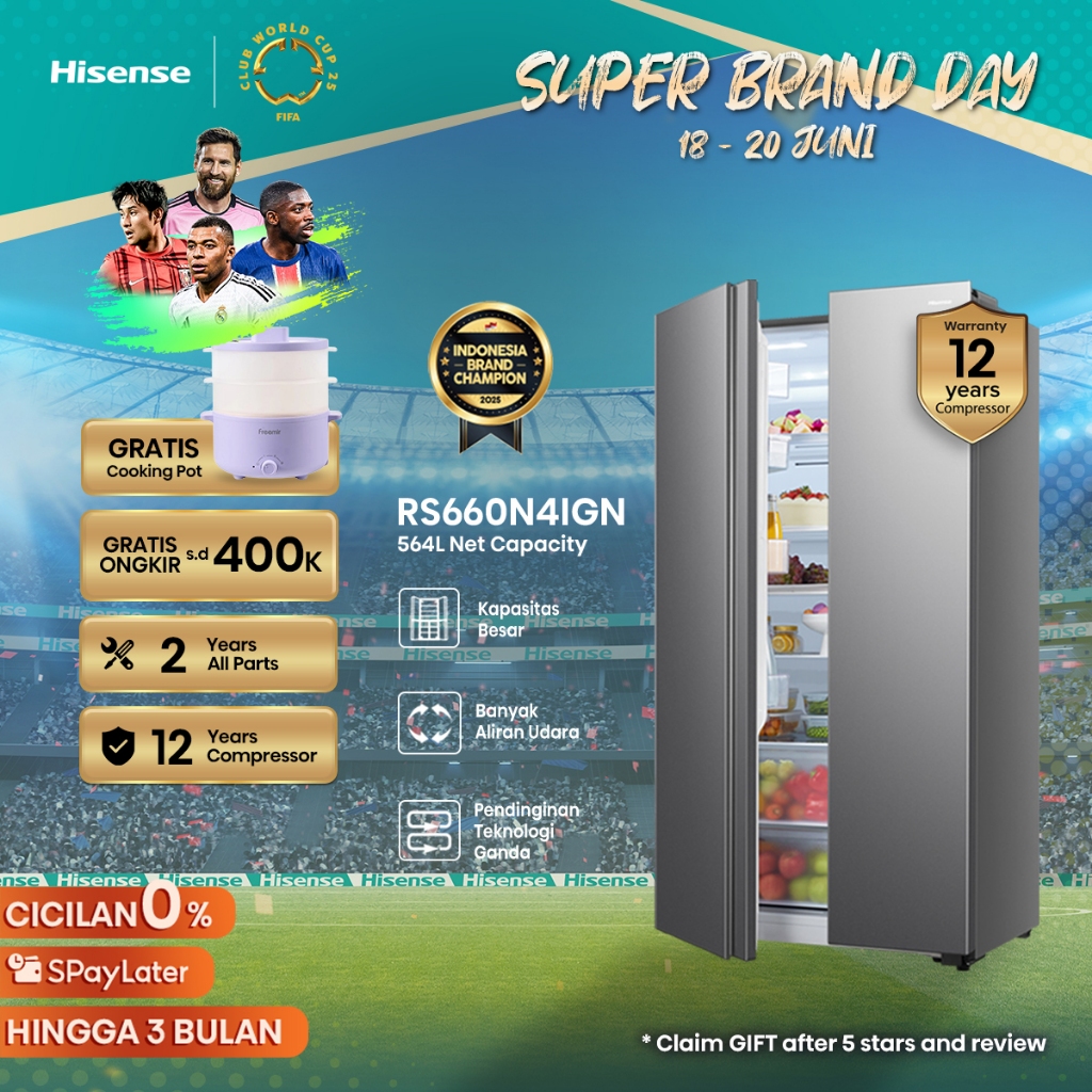 Hisense 564L Kulkas Side-by-side Refrigerator Silver-RS660N4IGN