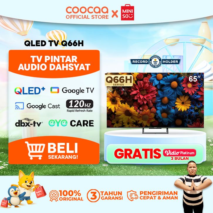 [TERBARU] COOCAA TV 65 inch Q66H - 4K QLED+ - Google TV - S AI Engine - 120Hz Motion -VRR - Eye Care 5.0 (65Q66H)