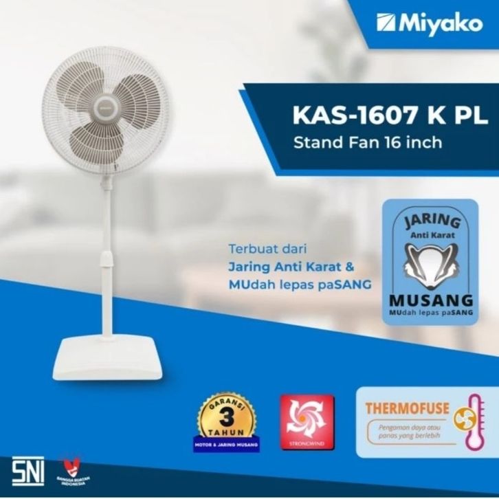 FREE ONGKIR KIPAS ANGIN BERDIRI MIYAKO / KIPAS ANGIN MIYAKO / MIYAKO STAND FAN 16 INCH KAS 1607 PL / 1607 KPL / 1607 GB