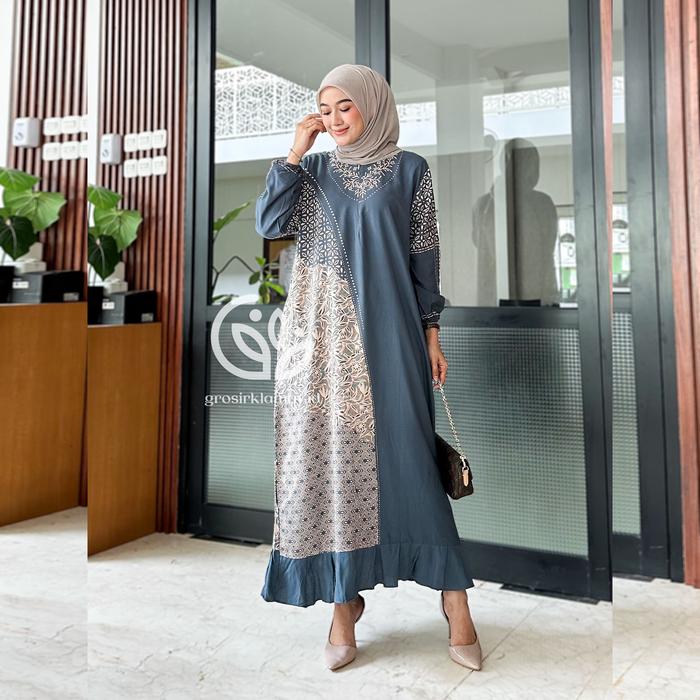 Kejora Dress Rayon Rempel Busui Lengan Panjang Homedress Daster Batik Adem Tebal Nyaman