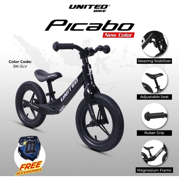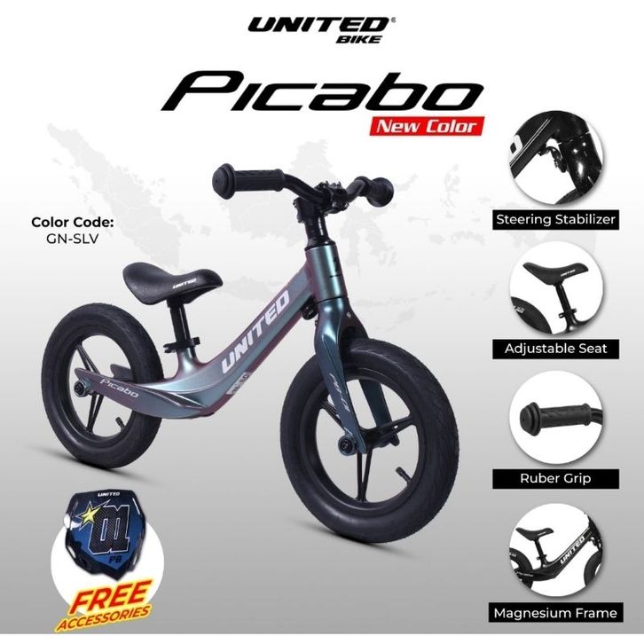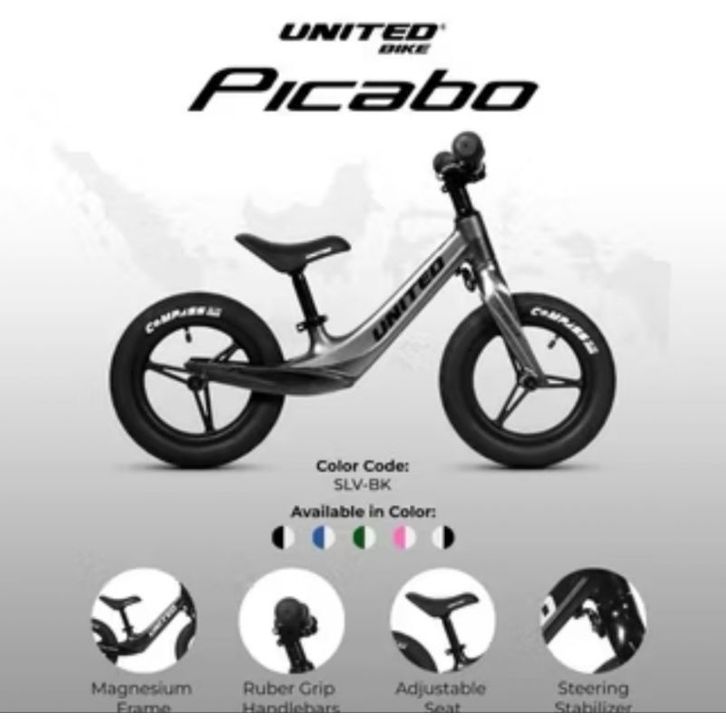 Balance Bike UNITED PICABO Frame Magnesium UNITED PICABO PB 01 Ban Karet Pompa Push Bike Sepeda Keseimbangan Anak