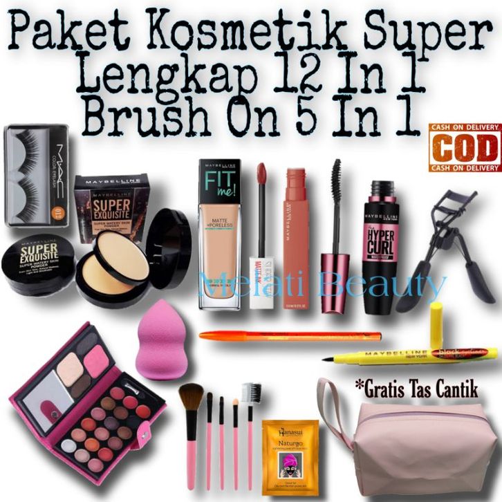 Satu Set Make Up Paket Kosmetik Super Lengkap 12 In 1 / Paket Kosmetik / Paket Kecantikan / Make Up Wanita / Kuas Brush