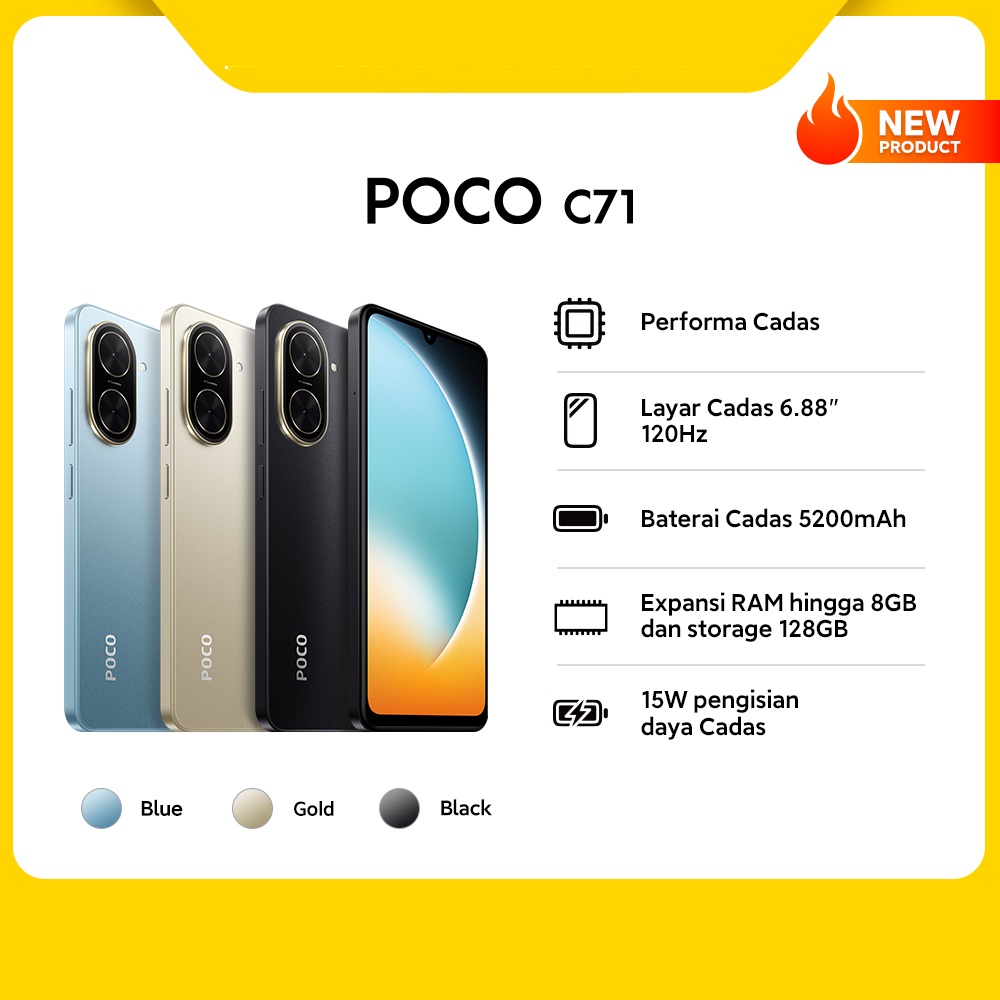POCO C71 (4+4GB/128GB) Performa Cadas | Layar Cadas 6.88" 120Hz | Baterai Cadas 5200mAh | Expansi Ram Hingga 8GB