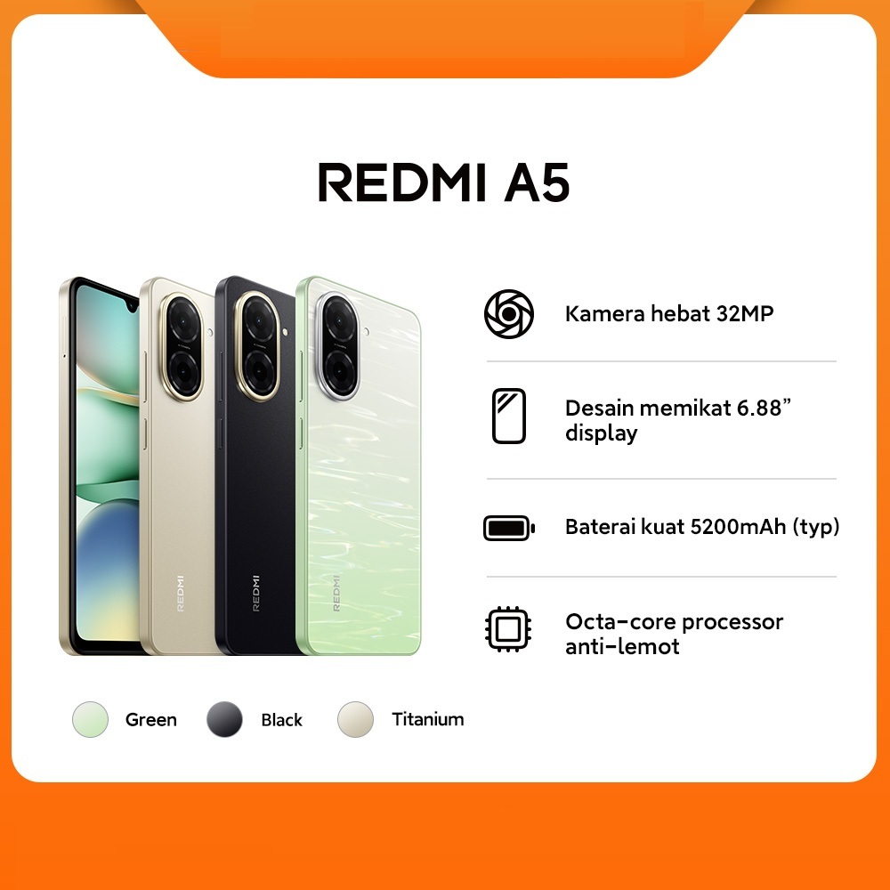 Xiaomi Redmi A5 4 4GB 128GB Kamera hebat 32MP | Desain memikat 6.88"display